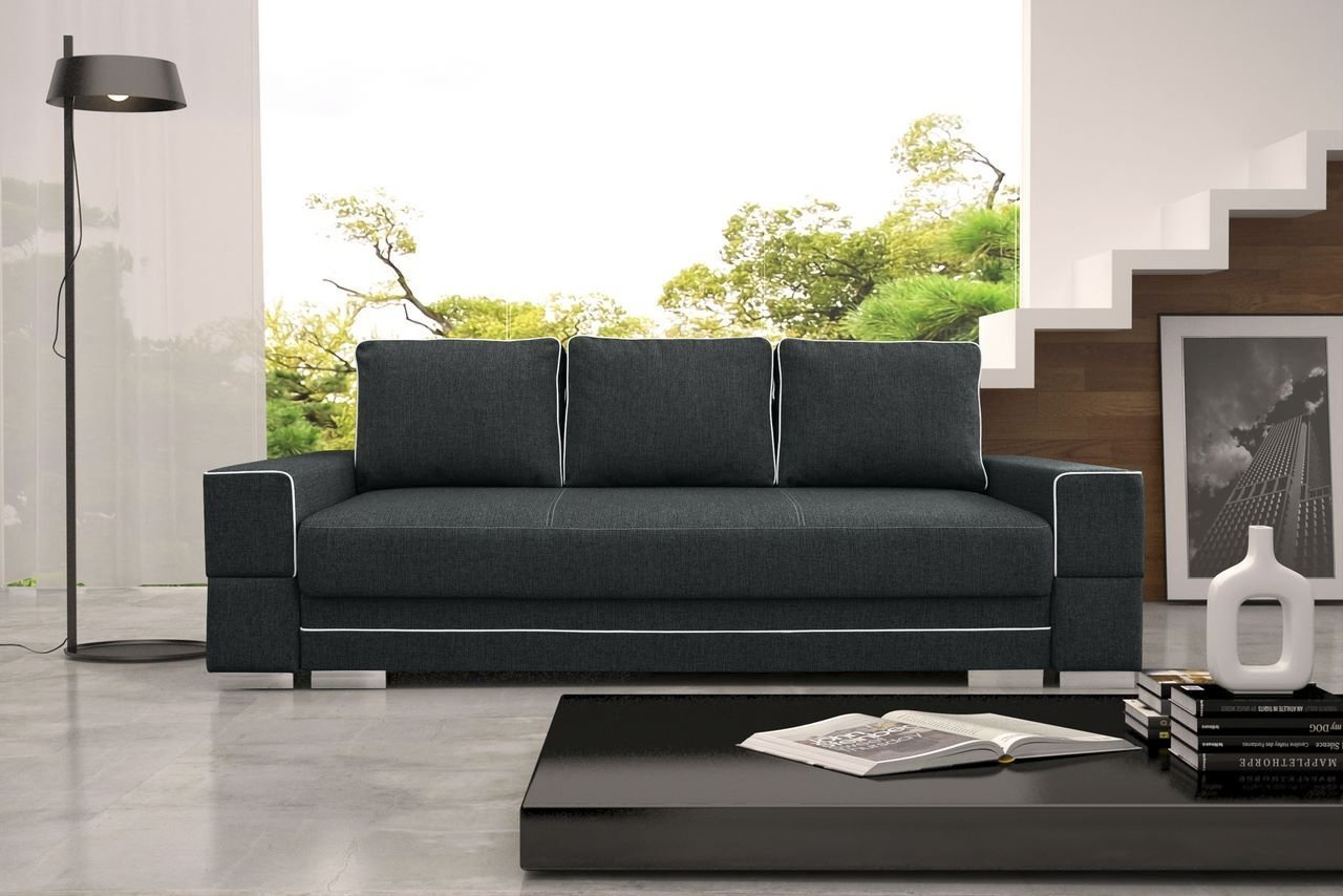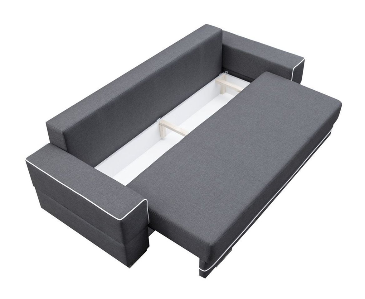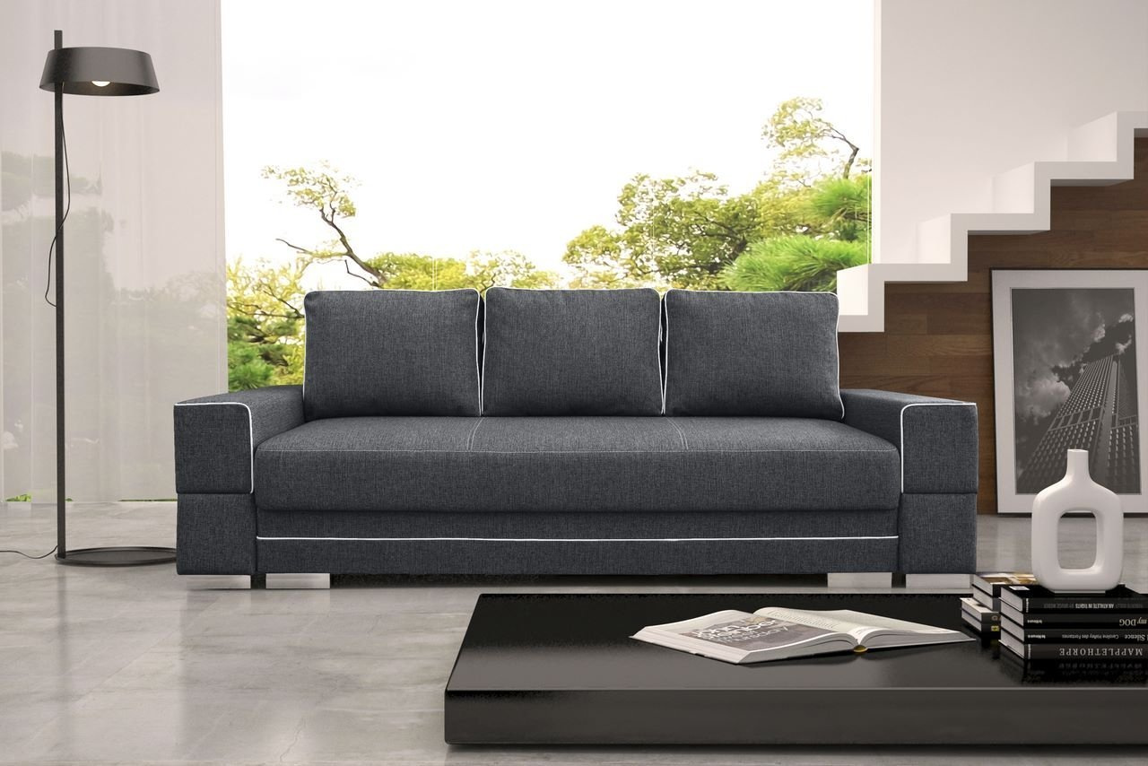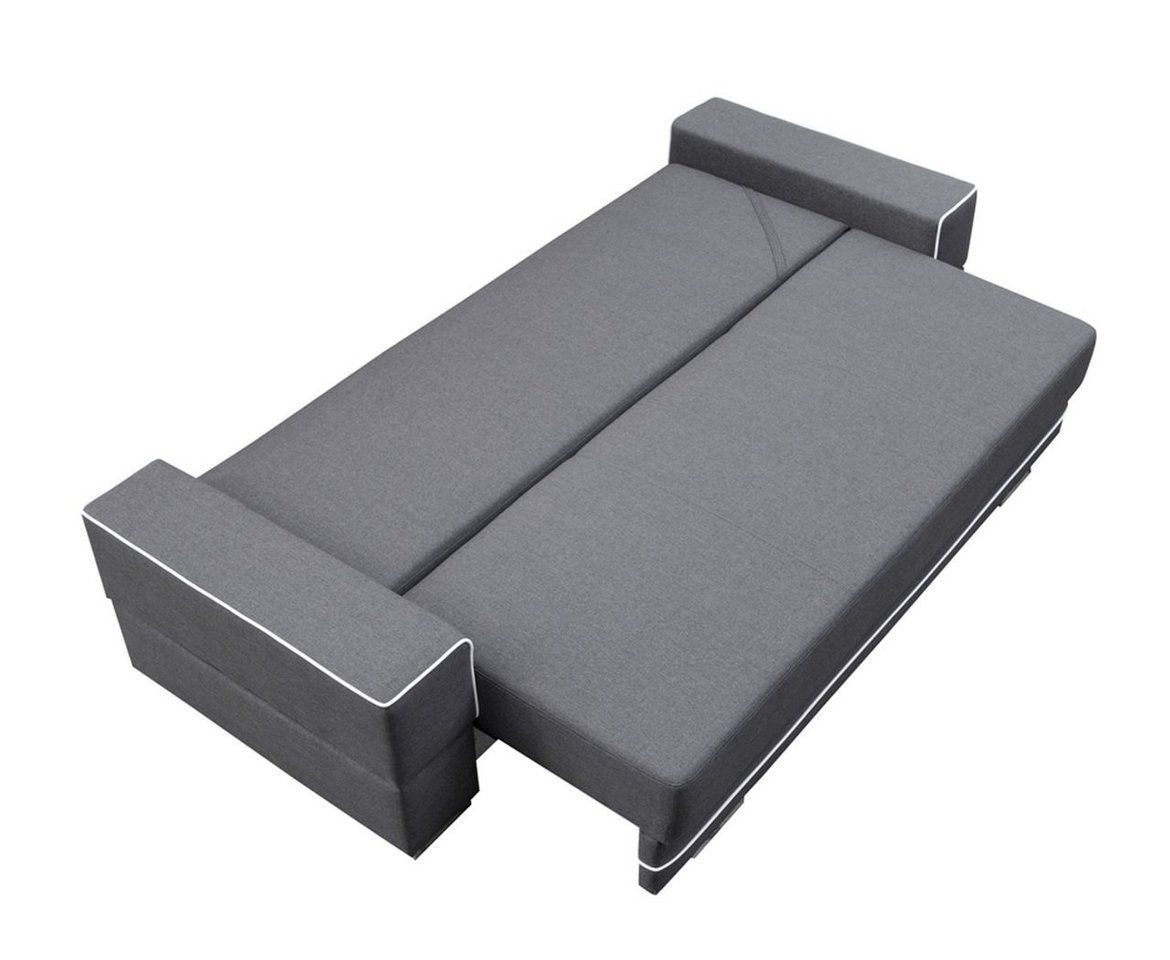 Tył kanapy tapicerowany Znacznie ułatwia użytkowanie dzięki pojemnikowi na pościel. Posiada automat wspomagający rozkładanie.