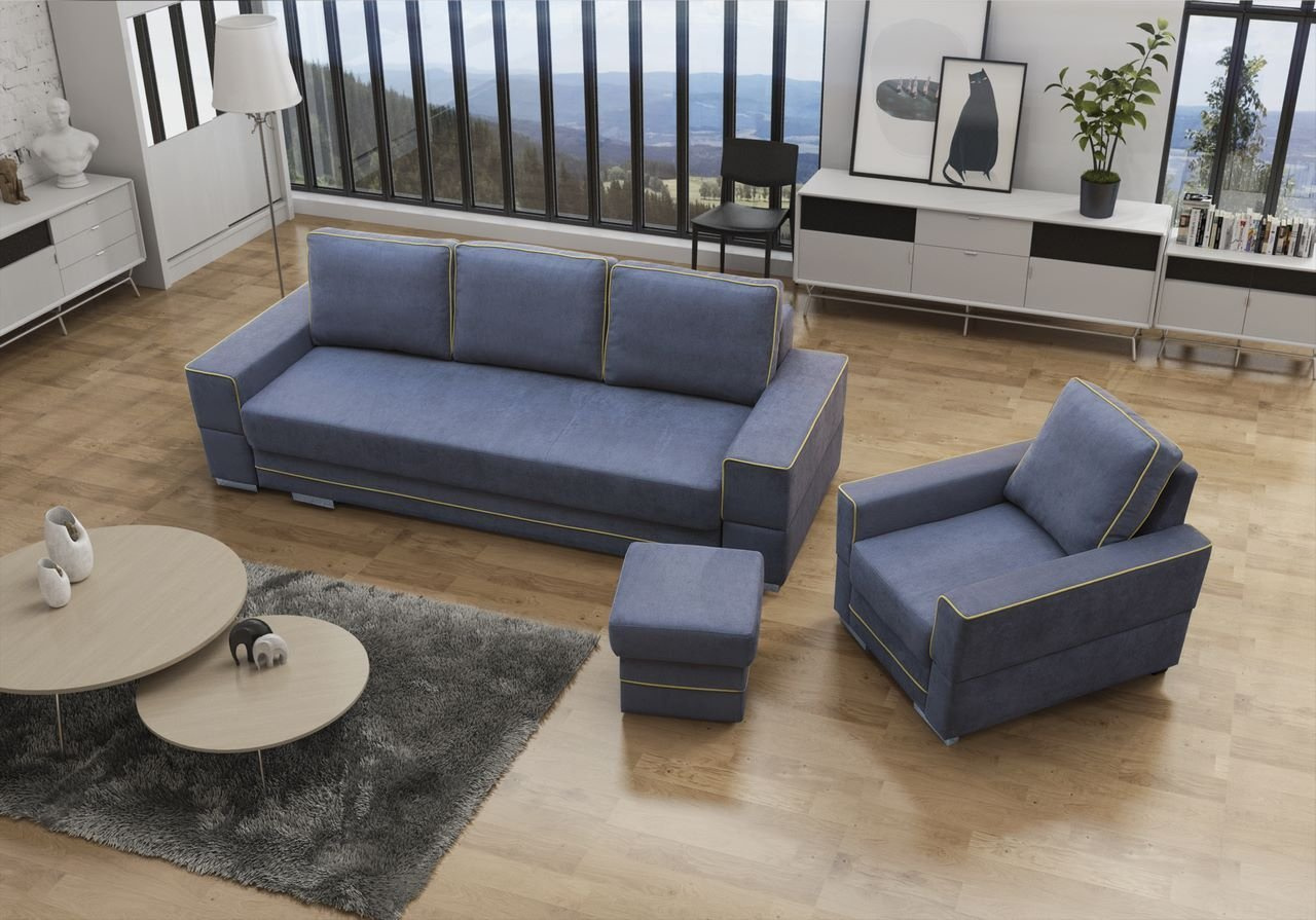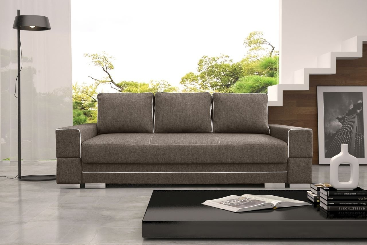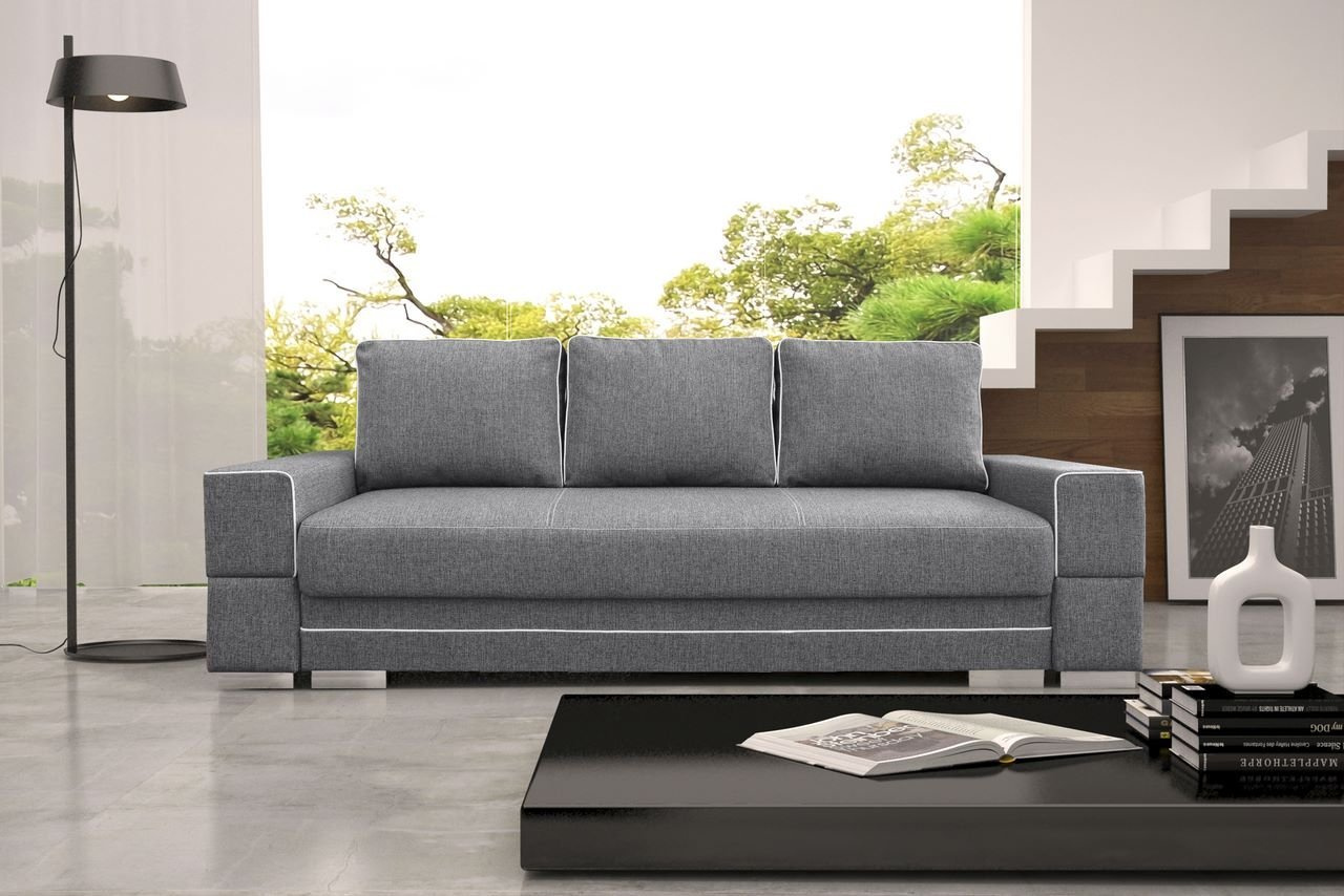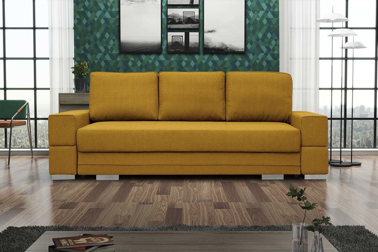 Tył kanapy tapicerowany Znacznie ułatwia użytkowanie dzięki pojemnikowi na pościel. Posiada automat wspomagający rozkładanie.