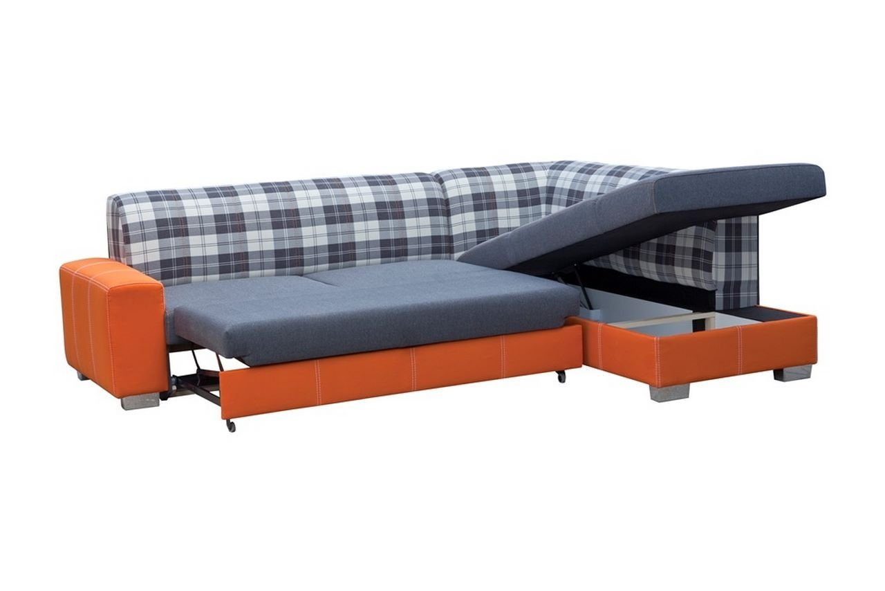 Ogromną zaletą narożnika jest zastosowana sprężyna falista, która czyni go niezwykle wygodnym. Co ważne – mebel rozkłada się i umożliwia spanie. W ciągu dnia może więc służyć jako kanapa, w nocy – wygodne łóżko. Atutem będzie w tym przypadku również pojemna skrzynia na pościel.