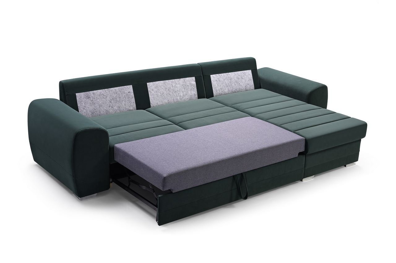 Mebel można również rozkładać bez konieczności odsuwania go od ściany. Konstrukcja pozwala na postawienie narożnika także na środku pokoju. Mechanizm otwierania jest bardzo intuicyjny i prosty w użyciu, nawet osoby mniej zorientowane w podobnych zagadnieniach nie powinny mieć problemu z rozłożeniem narożnika. Pojemnik na pościel znajdujący się w narożniku pozwala na przechowywanie kompletu pościeli, bez trudu zmieści się tam zarówno kołdra jak i poduszki.