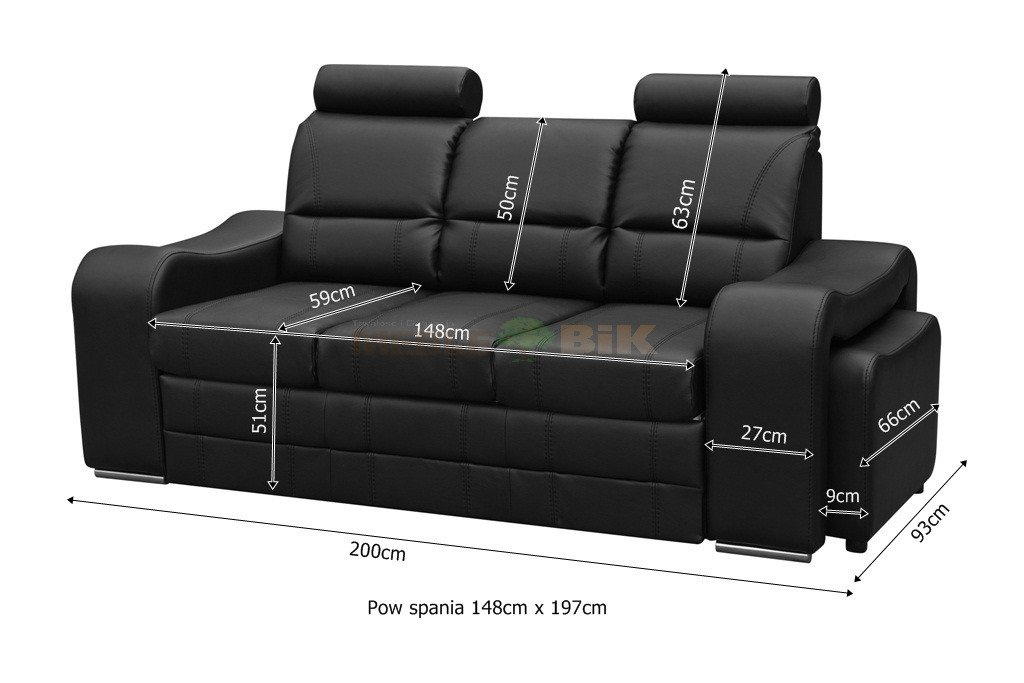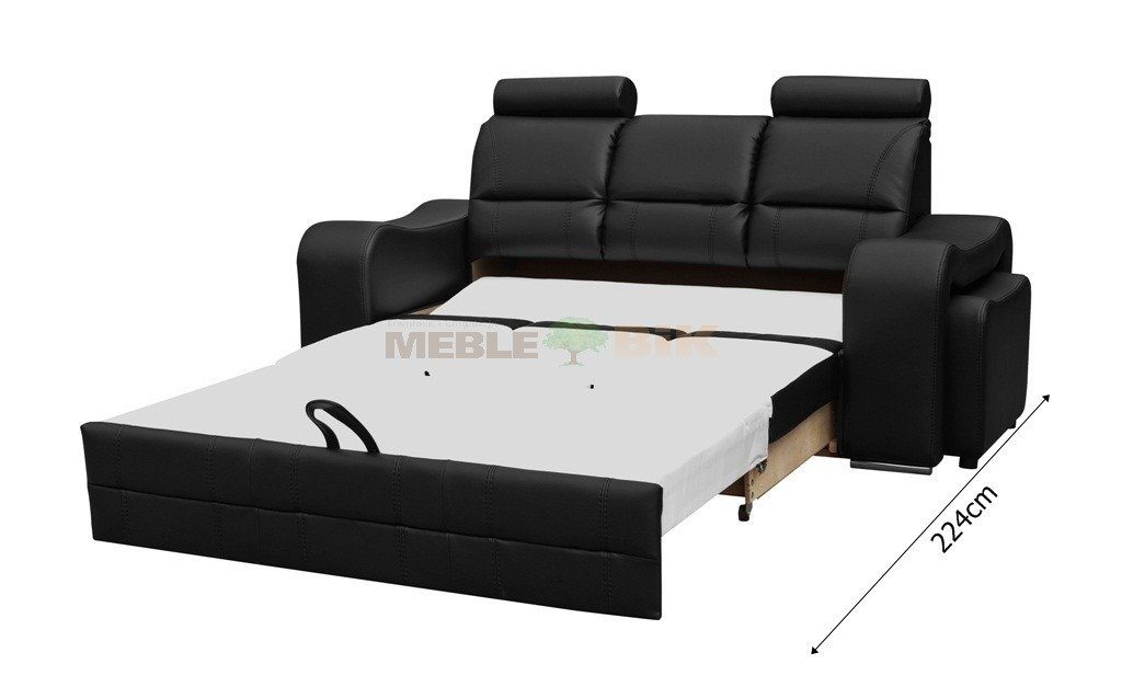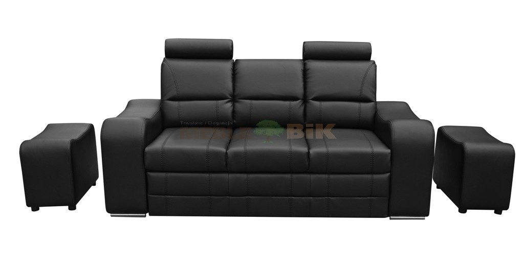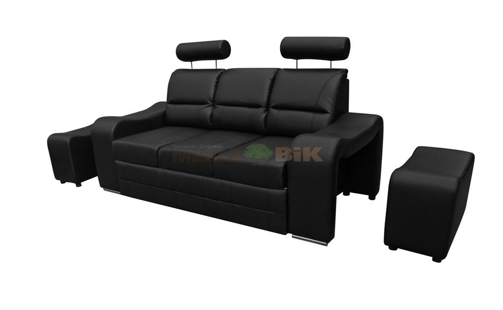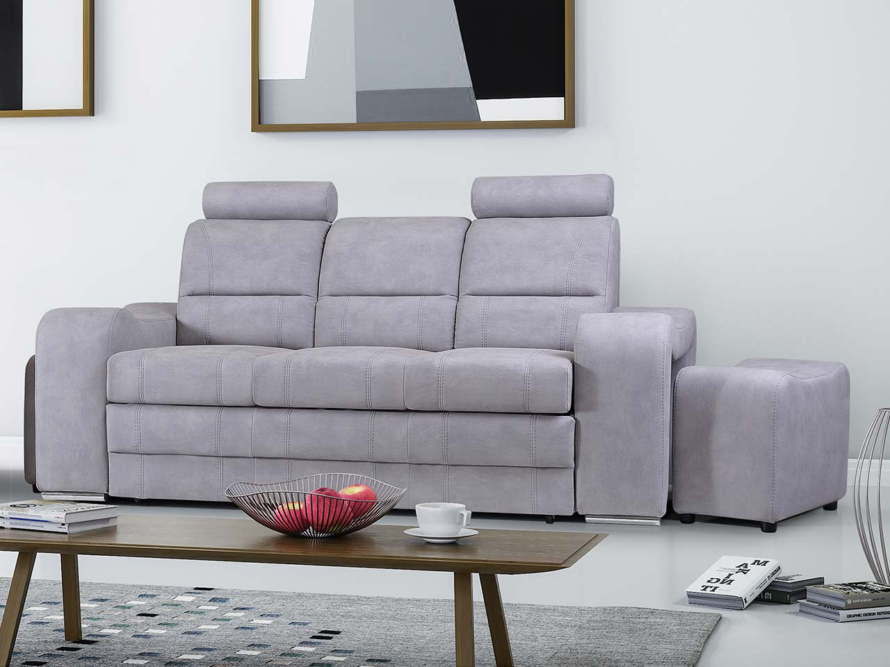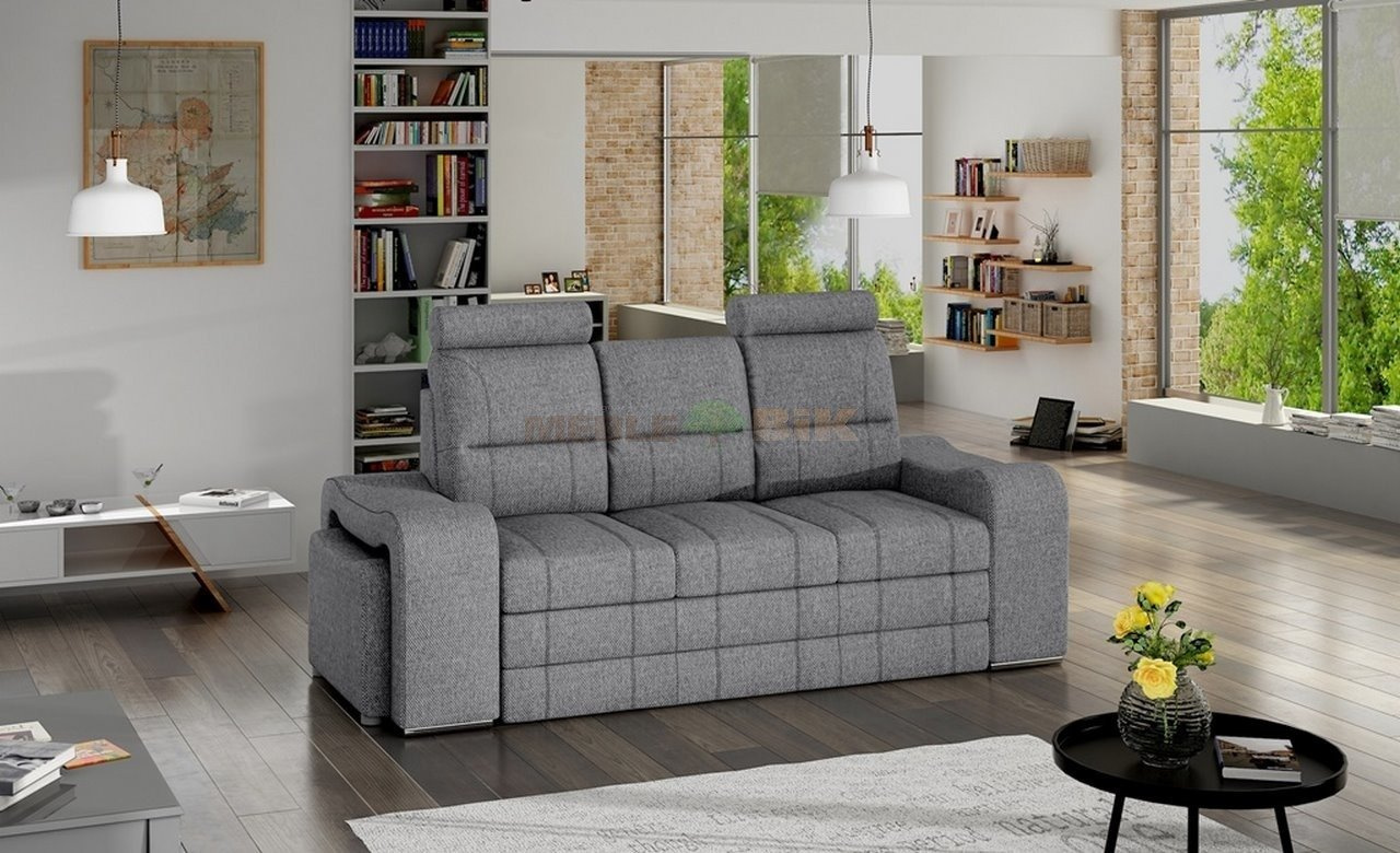 Regulowane zagłówki i faliste sprężyny, zapewniają dużą wygodę użytkowania. Posiada dwie niewielkie pufy, które bez problemu można wsunąć w boki mebla, w zależności od potrzeby. Dodatkowo mieści w sobie także pojemnik na pościel i może służyć jako łóżko do spania, a sprawne i szybkie rozkładanie sofy nie będzie dla nikogo kłopotliwe. Jest zatem nie tylko gustownym meblem do salonu, ale także bardzo wygodnym wypoczynkiem.
