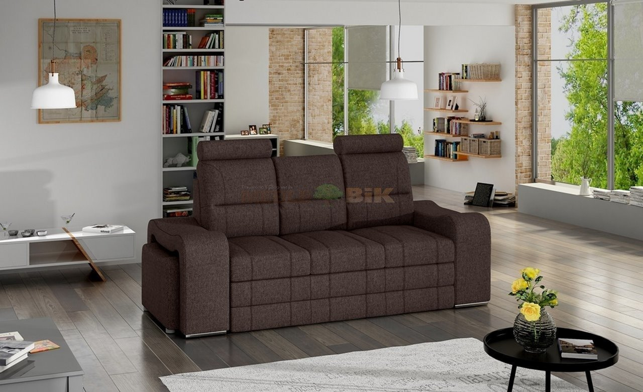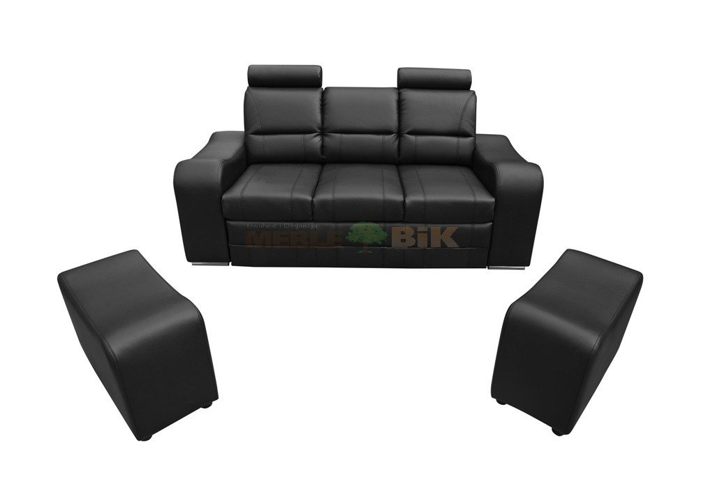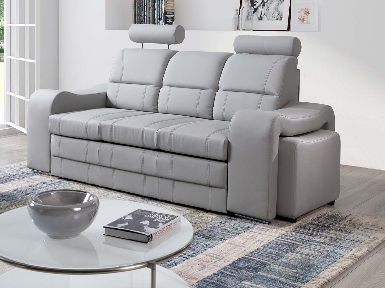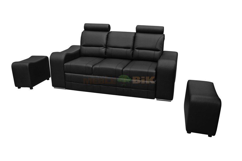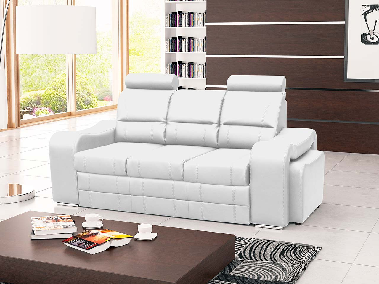 Regulowane zagłówki i faliste sprężyny, zapewniają dużą wygodę użytkowania. Posiada dwie niewielkie pufy, które bez problemu można wsunąć w boki mebla, w zależności od potrzeby. Dodatkowo mieści w sobie także pojemnik na pościel i może służyć jako łóżko do spania, a sprawne i szybkie rozkładanie sofy nie będzie dla nikogo kłopotliwe. Jest zatem nie tylko gustownym meblem do salonu, ale także bardzo wygodnym wypoczynkiem.