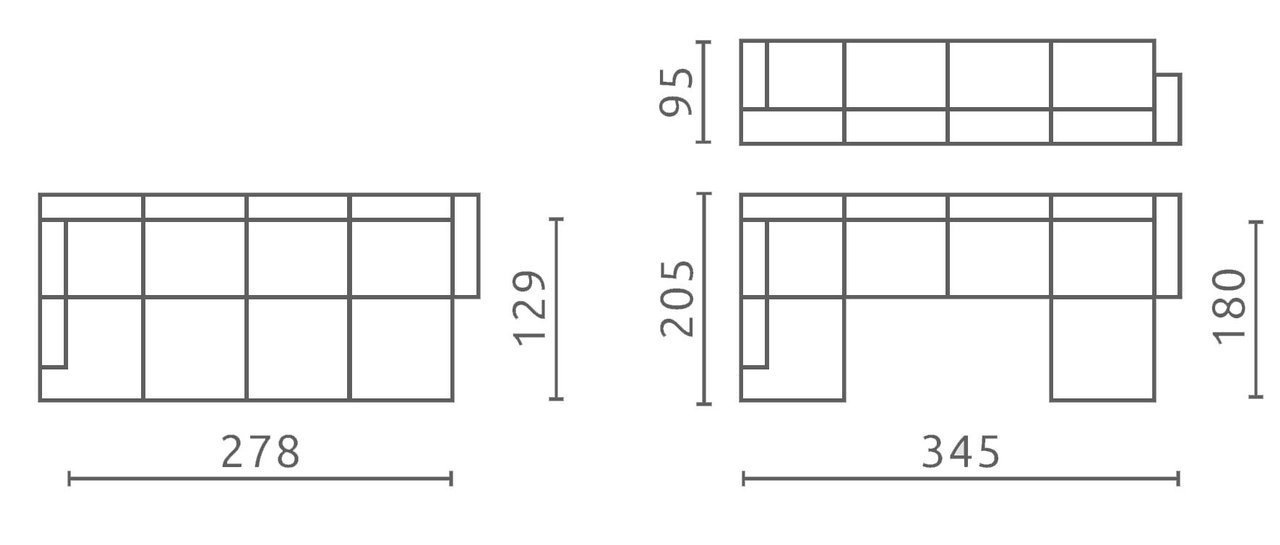 Szerokość (cm) ![]() Szerokość mebla podana w cm. | 345 |