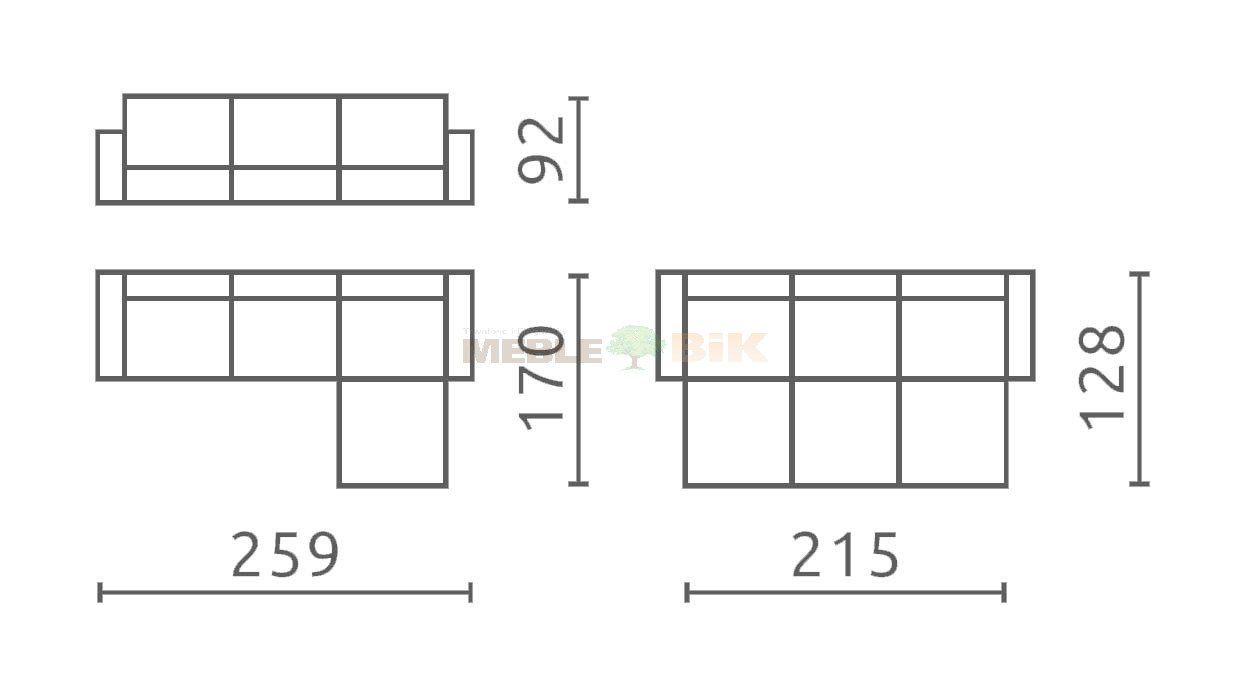 Szerokość (cm) ![]() Szerokość mebla podana w cm. | 259 |
