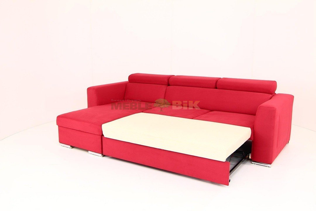Narożnik pokojowy z regulowanymi zagłówkami, nowoczesny i wygodny z funkcją spania. Idealnie nadaje się do salonu w czasie odpoczynku przez TV lub przy czytaniu gazety. Siedziska wzmocnione wykonane na sprężynach falistych.