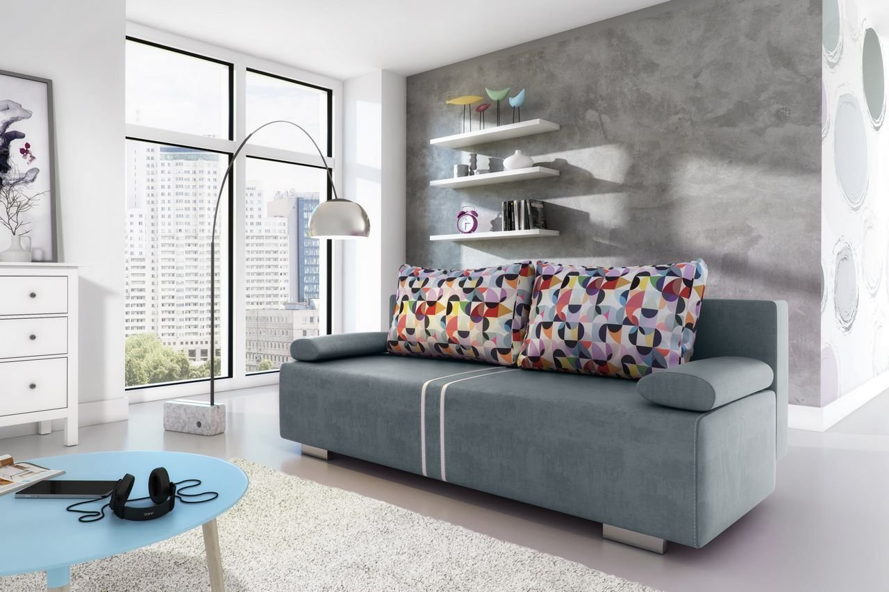 Znacznie ułatwia użytkowanie dzięki pojemnikowi na pościel. Posiada automat wspomagający rozkładanie. Tył sofy tapicerowany.