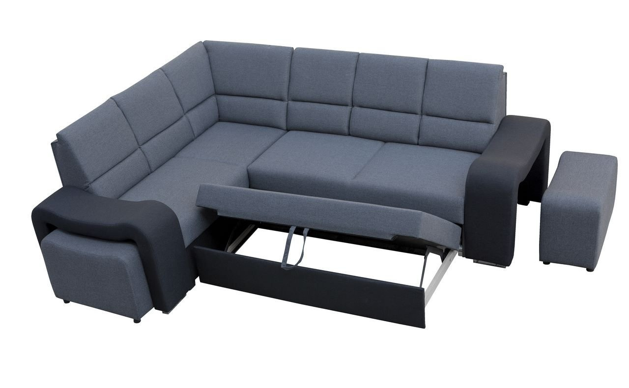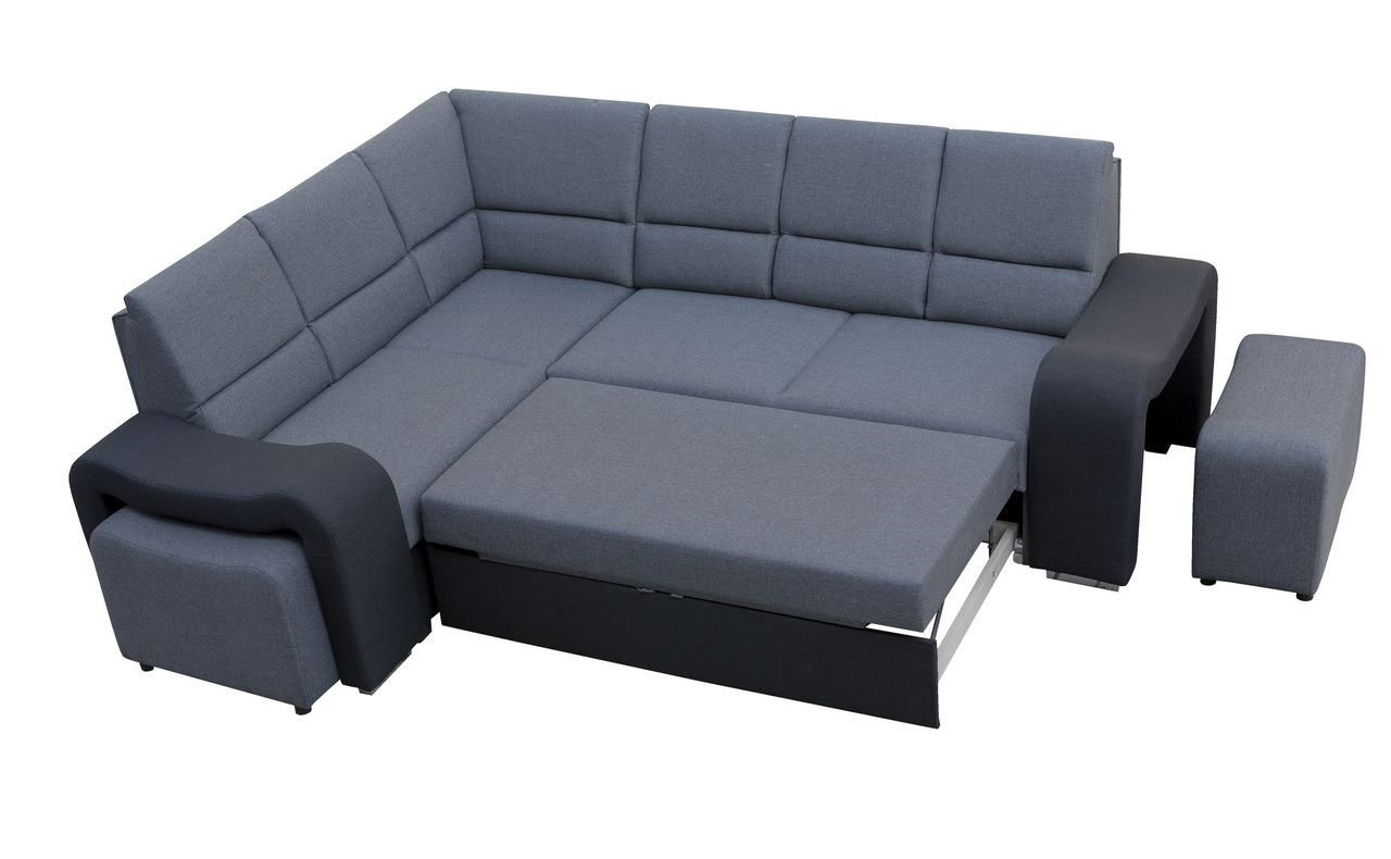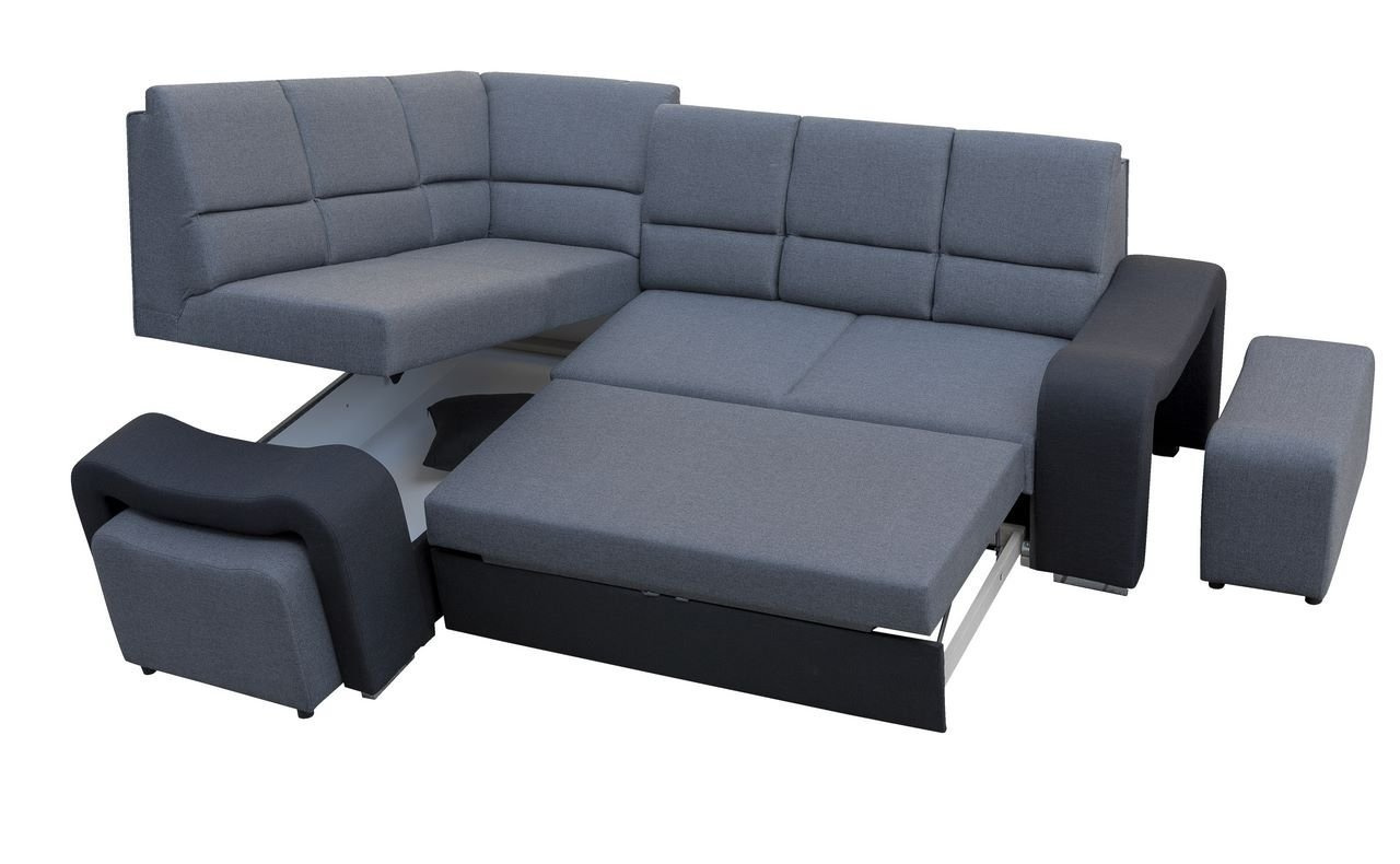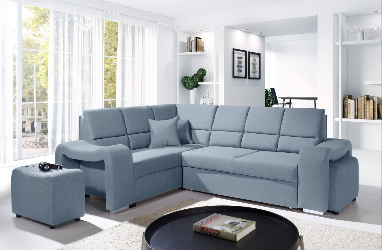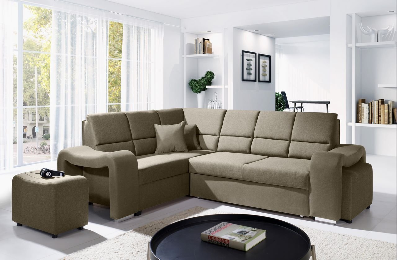 Narożnik nadaje się nie tylko do siedzenia, ale również jako dodatkowe łóżko sypialne. W razie potrzeby można go rozłożyć w zaledwie kilka sekund, a pościel przeznaczoną dla gości wyjąć z ulokowanej wewnątrz szuflady. Dzięki zastosowaniu sprężyny falistej kanapa jest niezwykle wygodna i możemy być pewni, że nic nie zakłóci snu naszych przyjaciół. Narożnik Wakiki to nie tylko pochwała użyteczności, ale także dobrego gustu, który bliscy na pewno docenią. Dodatkowo tylko teraz do każdego zakupu otrzymać można dwie dodatkowe pufy dopełniające całość kompletu.
