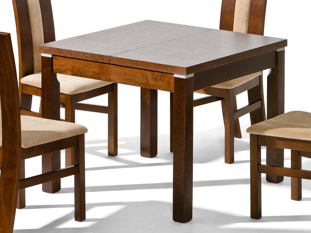 Blat stołu wykonany z płyty laminowanej. Nogi stołu z drewna bukowego. Staranne wykonanie przekłada się na jego stabilność oraz trwałość.