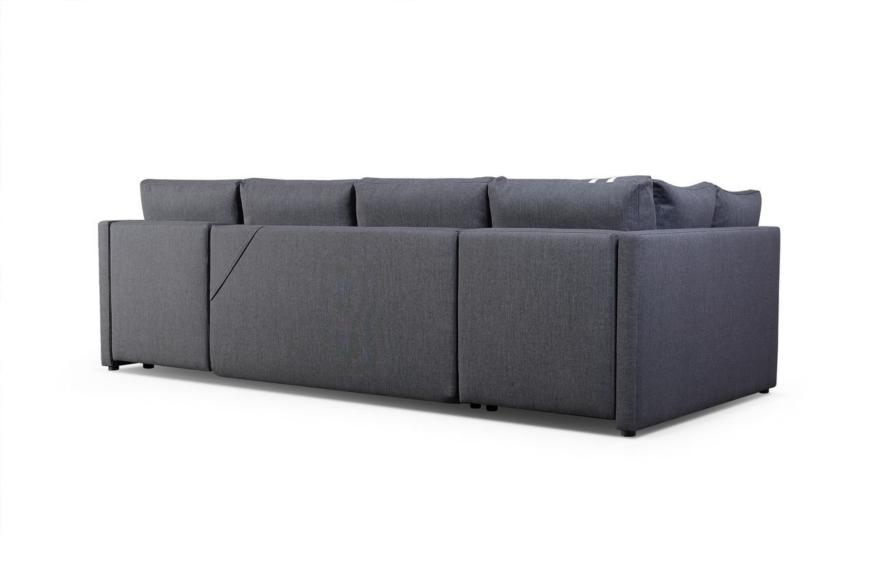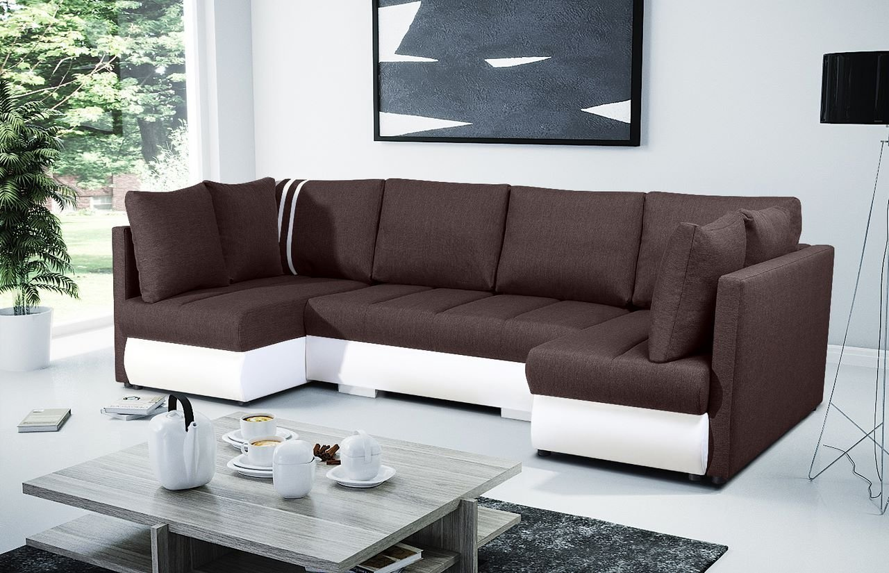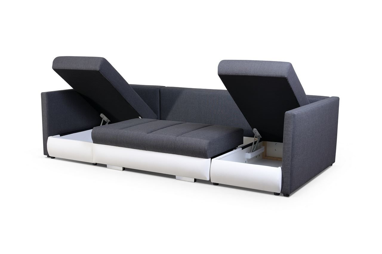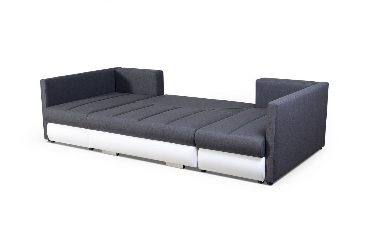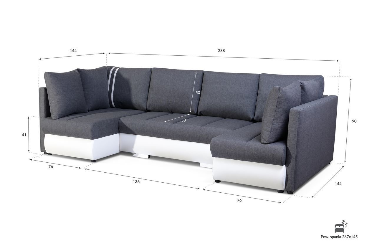 Narożnik rozkładany HITY U to gwarancja wysokiej jakości zastosowanych materiałów, solidnego wykonania oraz precyzyjnych wykończeń. Idealnie sprawdzi się zarówno jako interesująca i nietuzinkowa ozdoba salonu, jak i bardzo wygodne oraz funkcjonalne łóżko dla domowników lub gości. Mechanizm rozkładania nie rysuje podłogi, a dwa praktyczne pojemniki na pościel zwiększają komfort użytkowania.