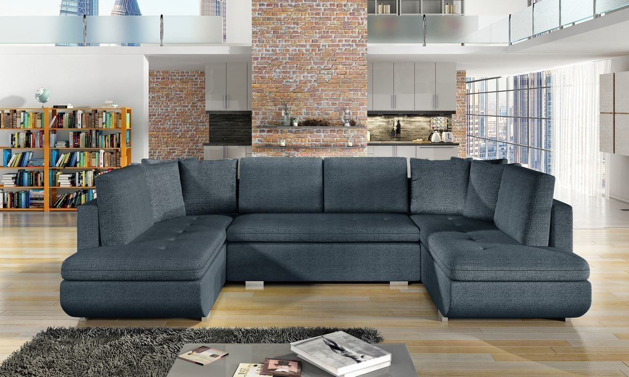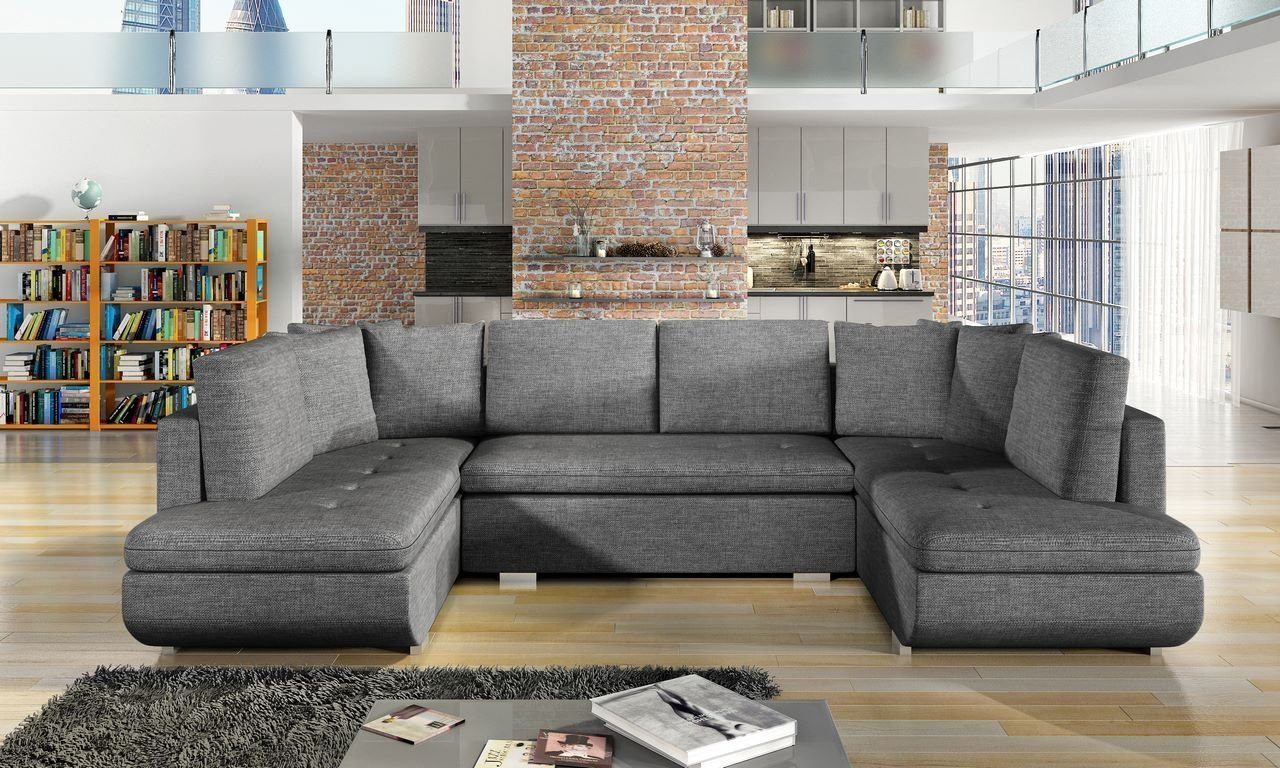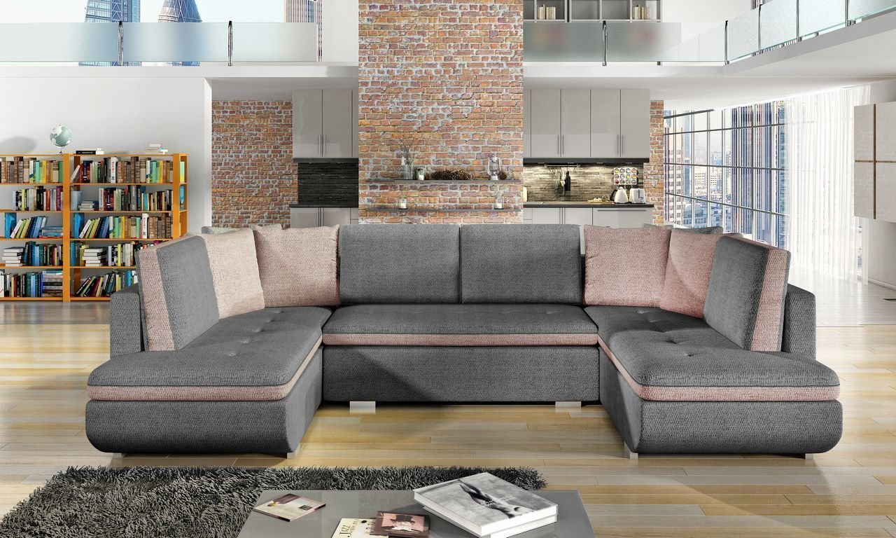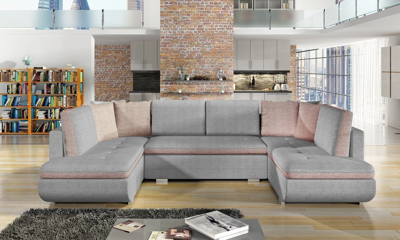 Naroznik w kształcie litery U posiada funkcja spania, jest rozkładany za pomocą automatu MOS (siedzisko jest podnoszone do góry).