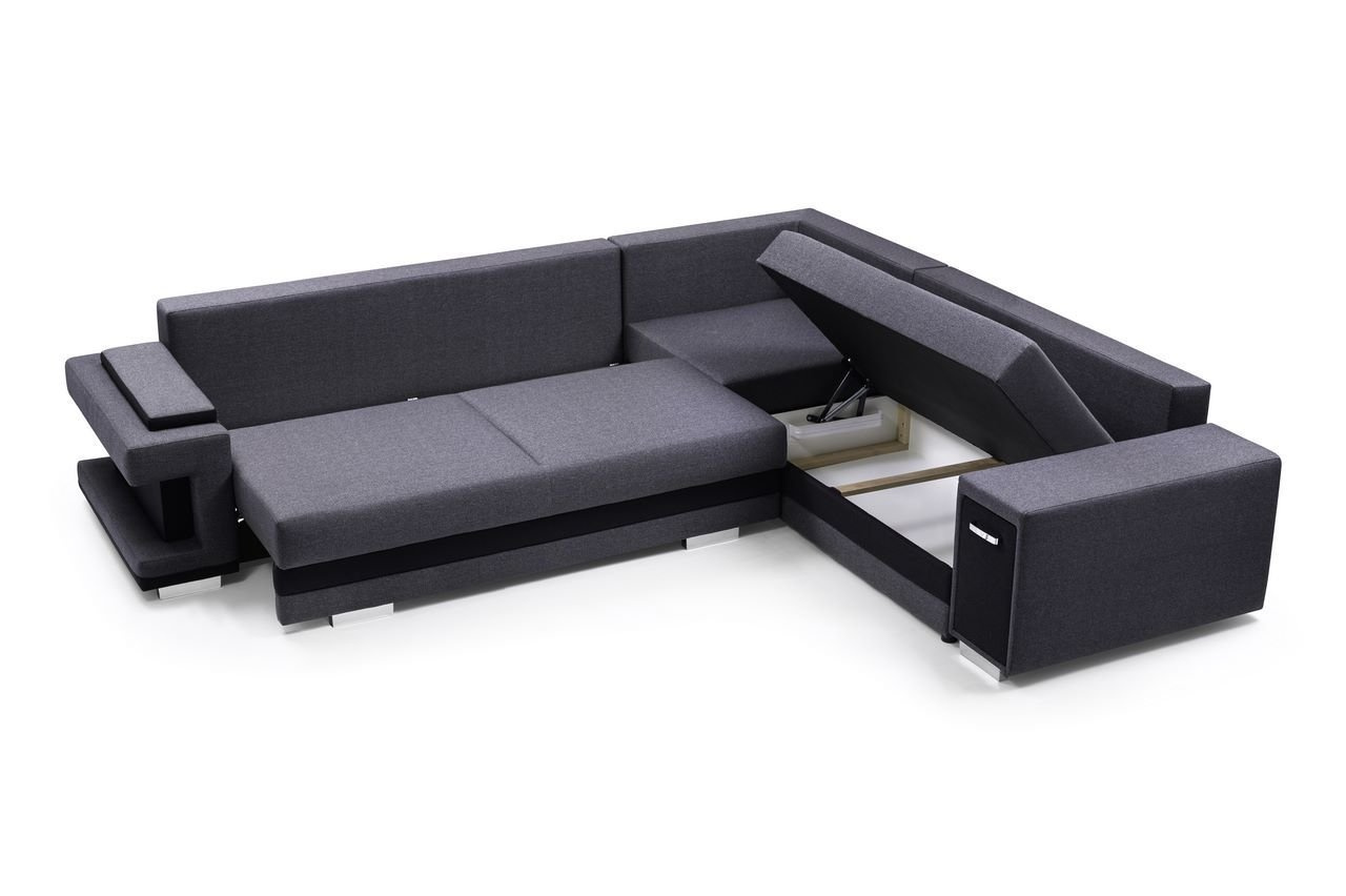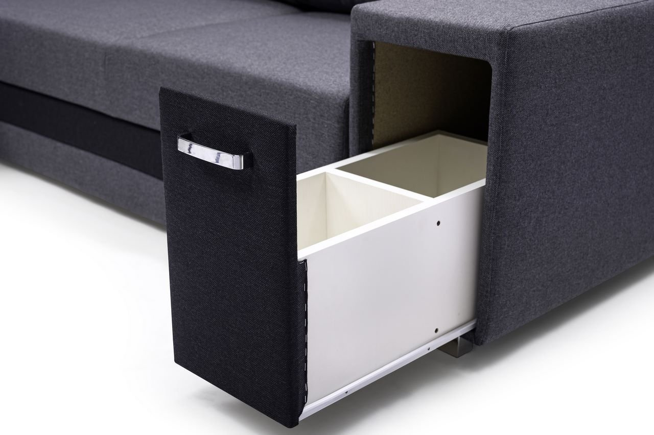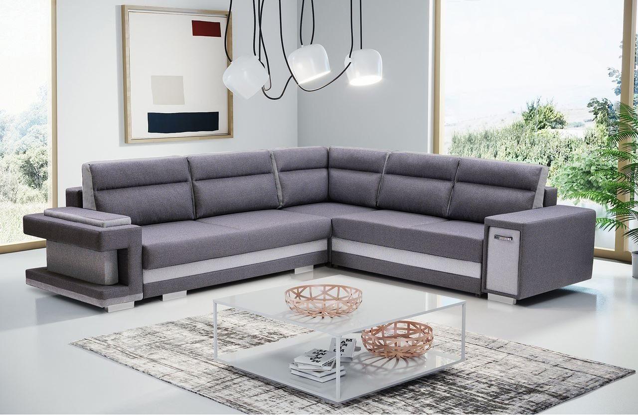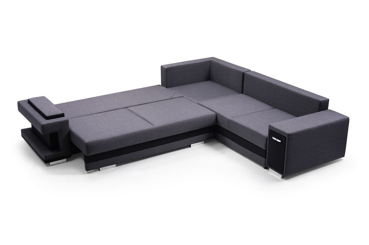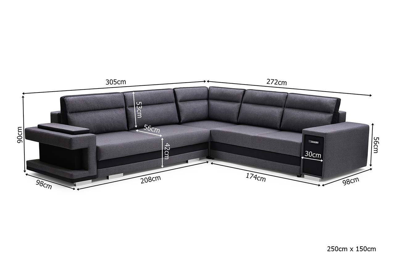 Nowoczesny wypoczynkowy narożnik z dużą powierzchnią spania 250x150 posiada następujące funkcje: