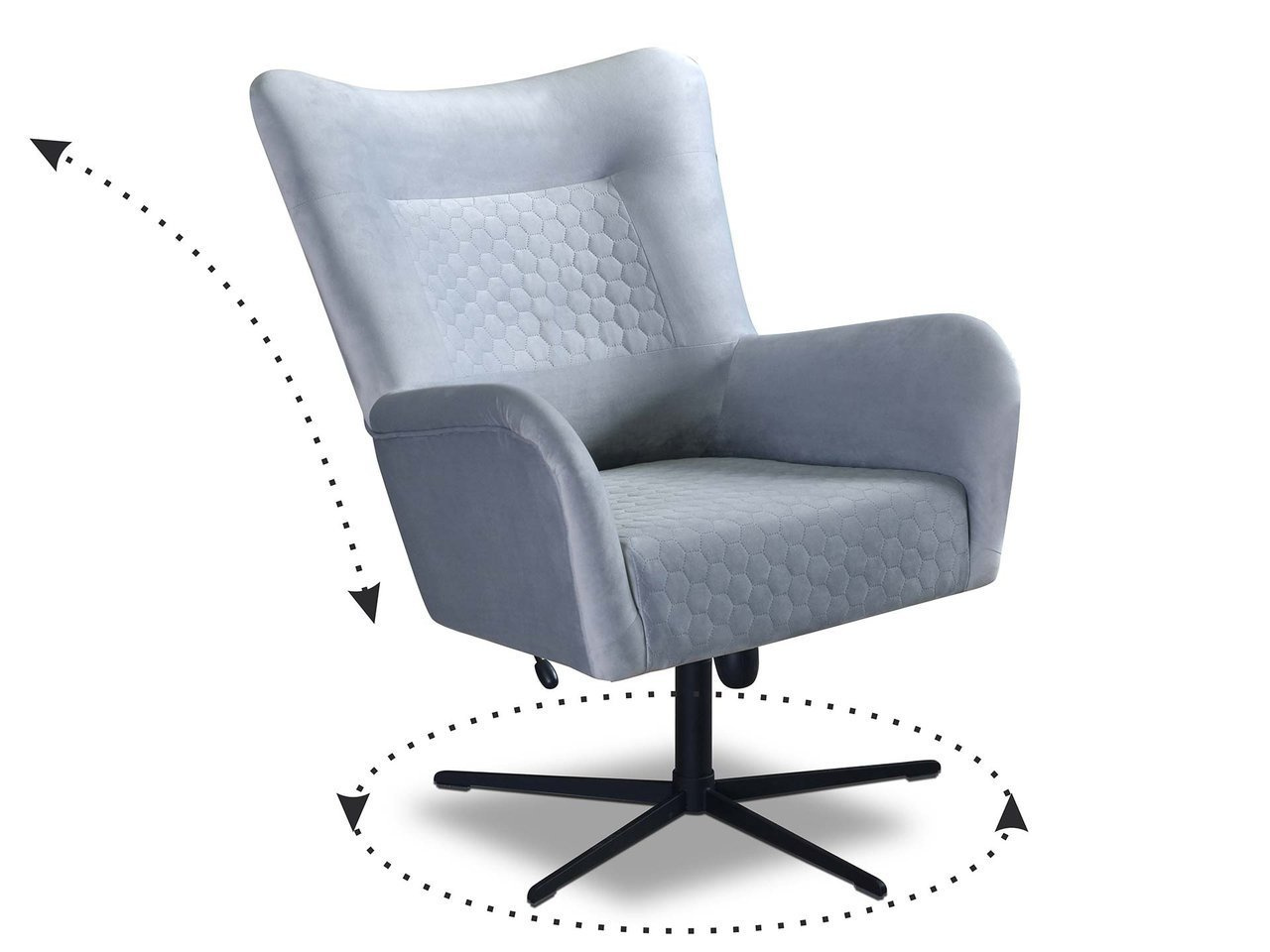 Wygodny fotel na metalowym stelażu obrotowym.