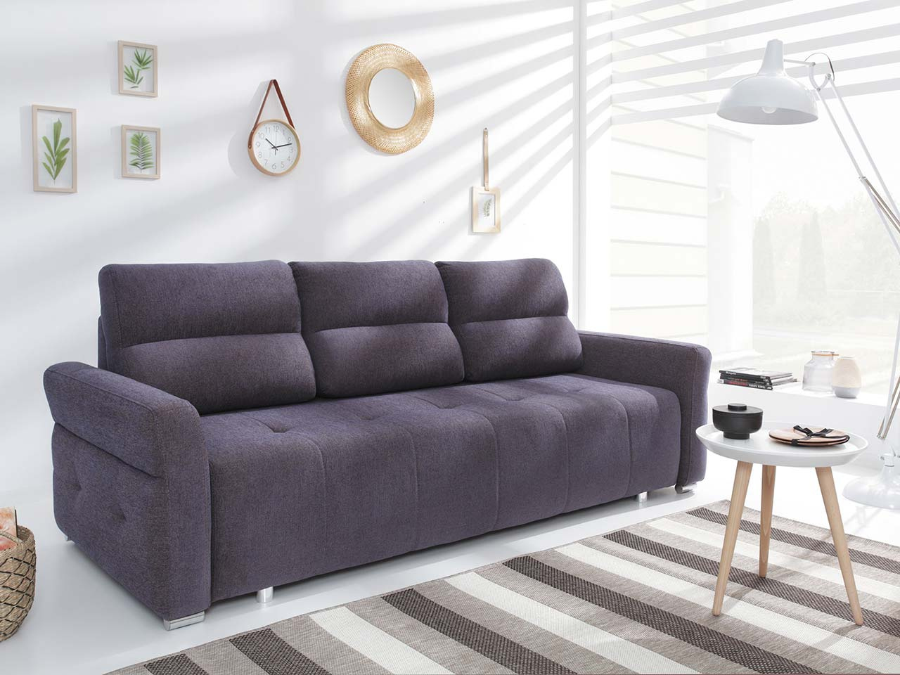 Nowoczesna kanapa z funcją spania, pasuje idealnie do pokoju lub salonu.