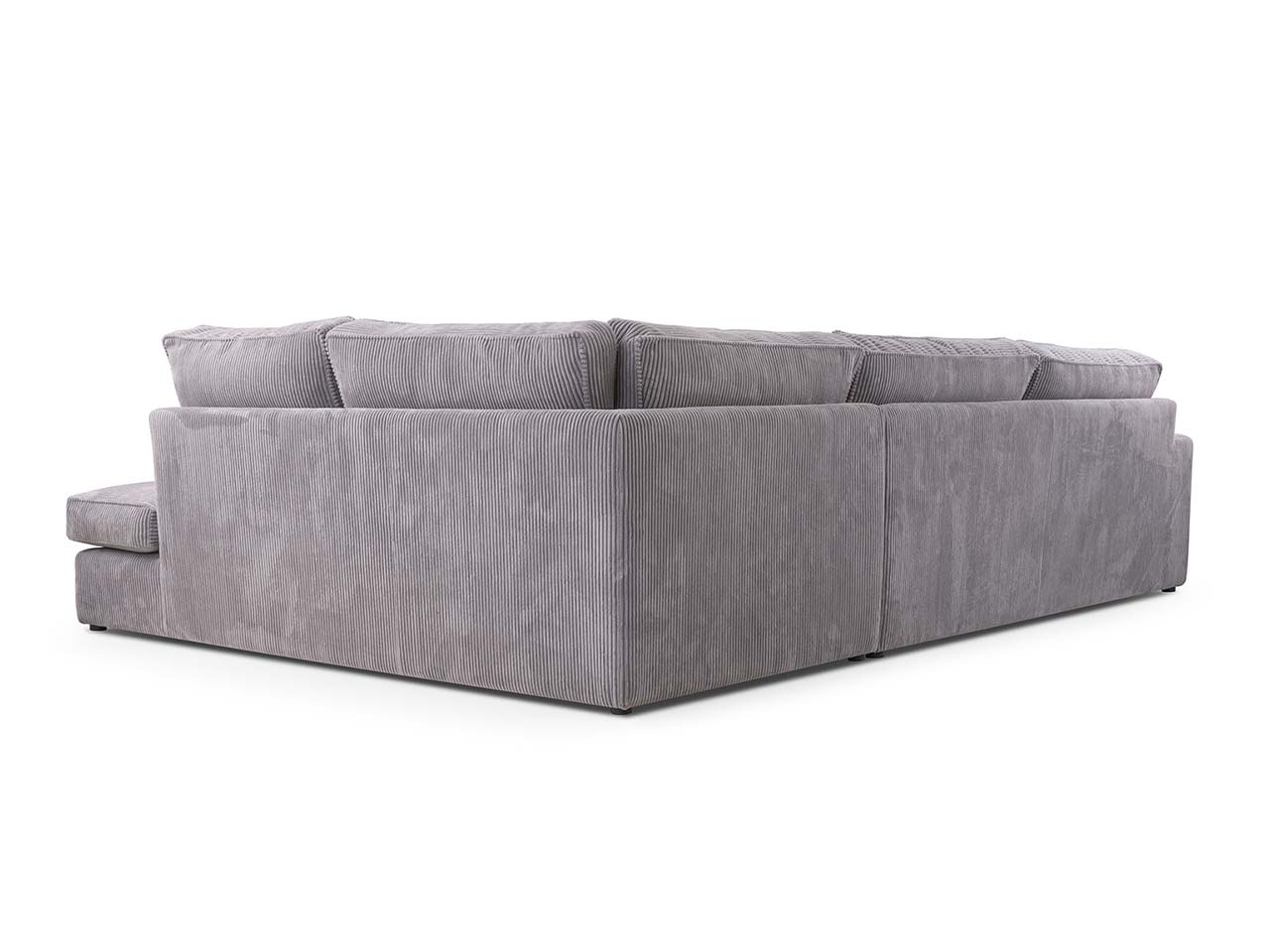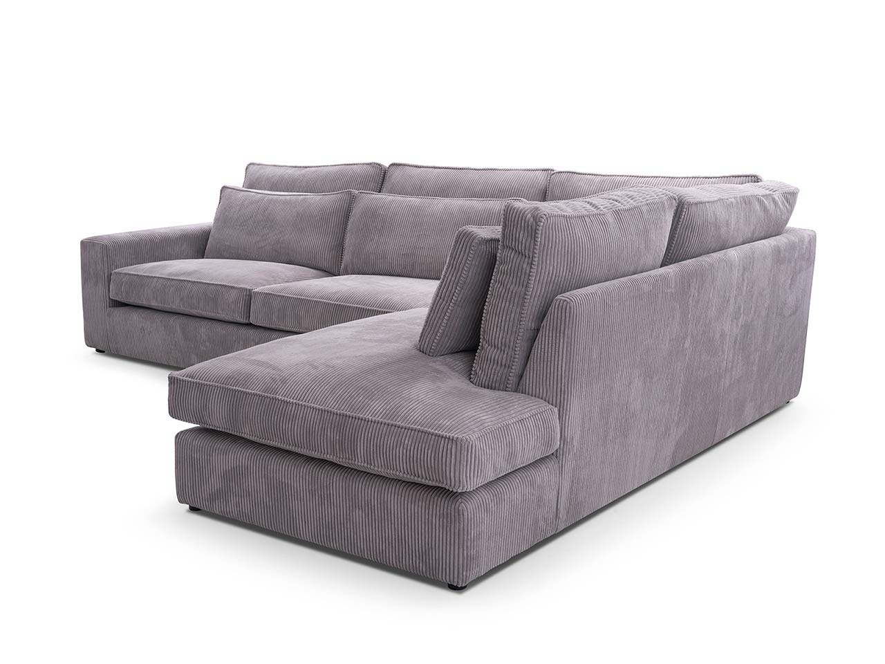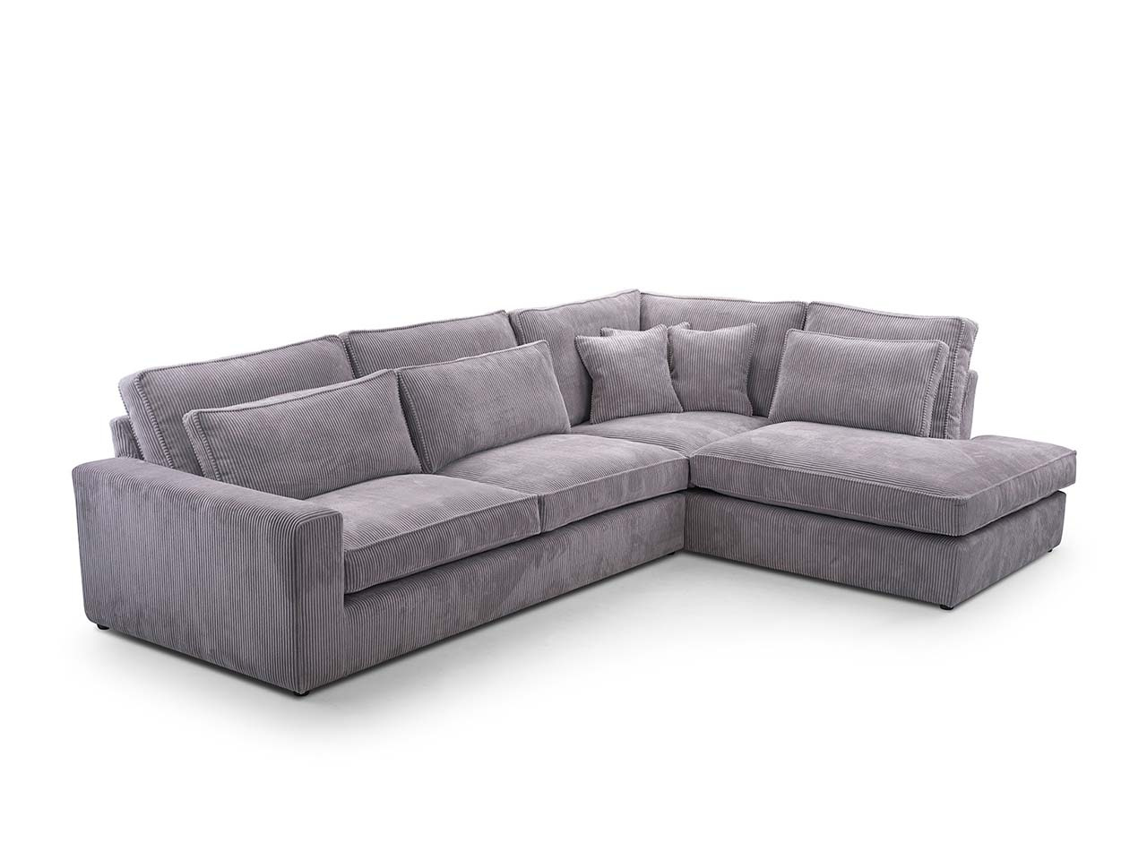 Nowoczesny nierozkładany narożnik do salonu z poduszkami.