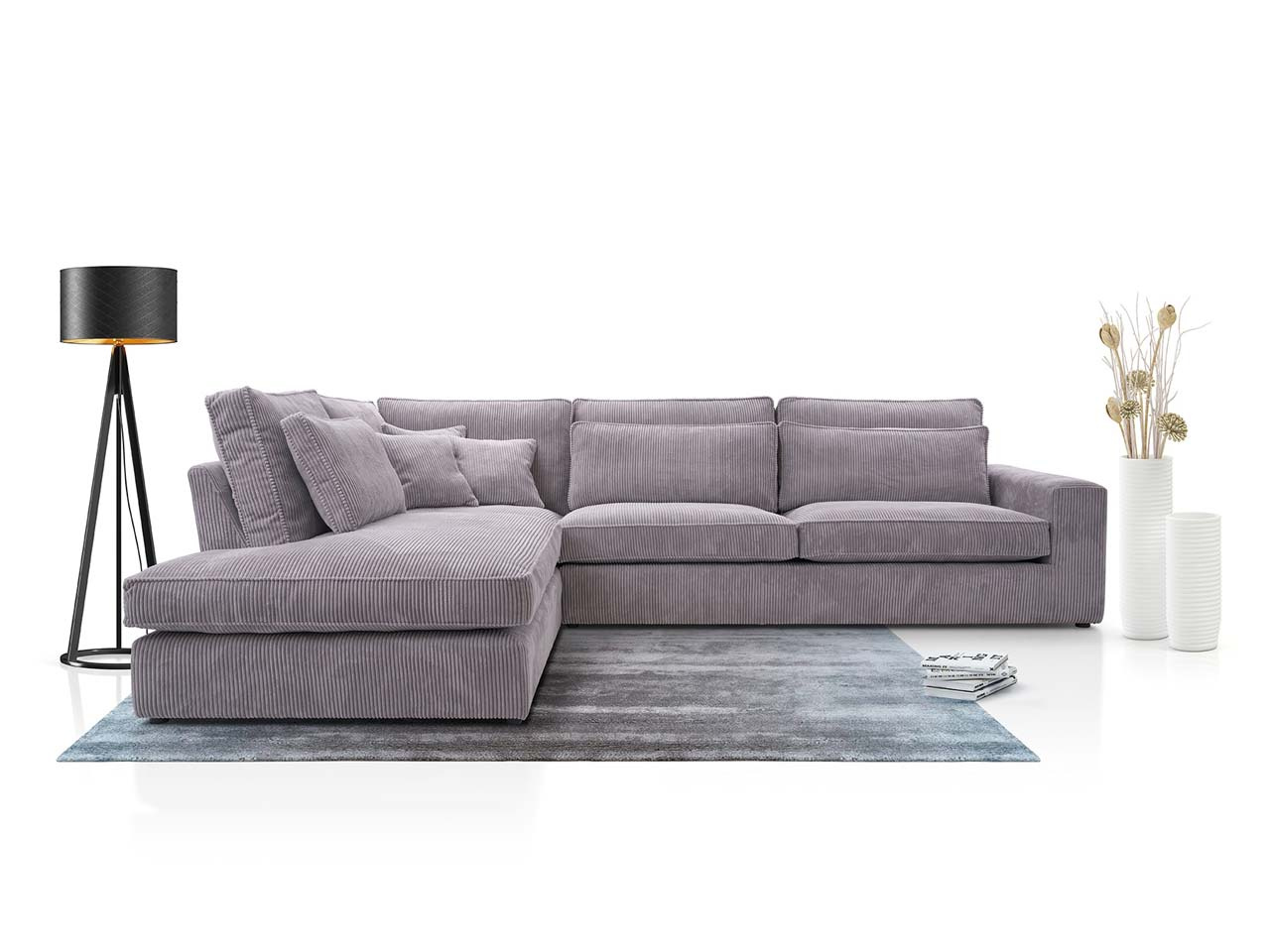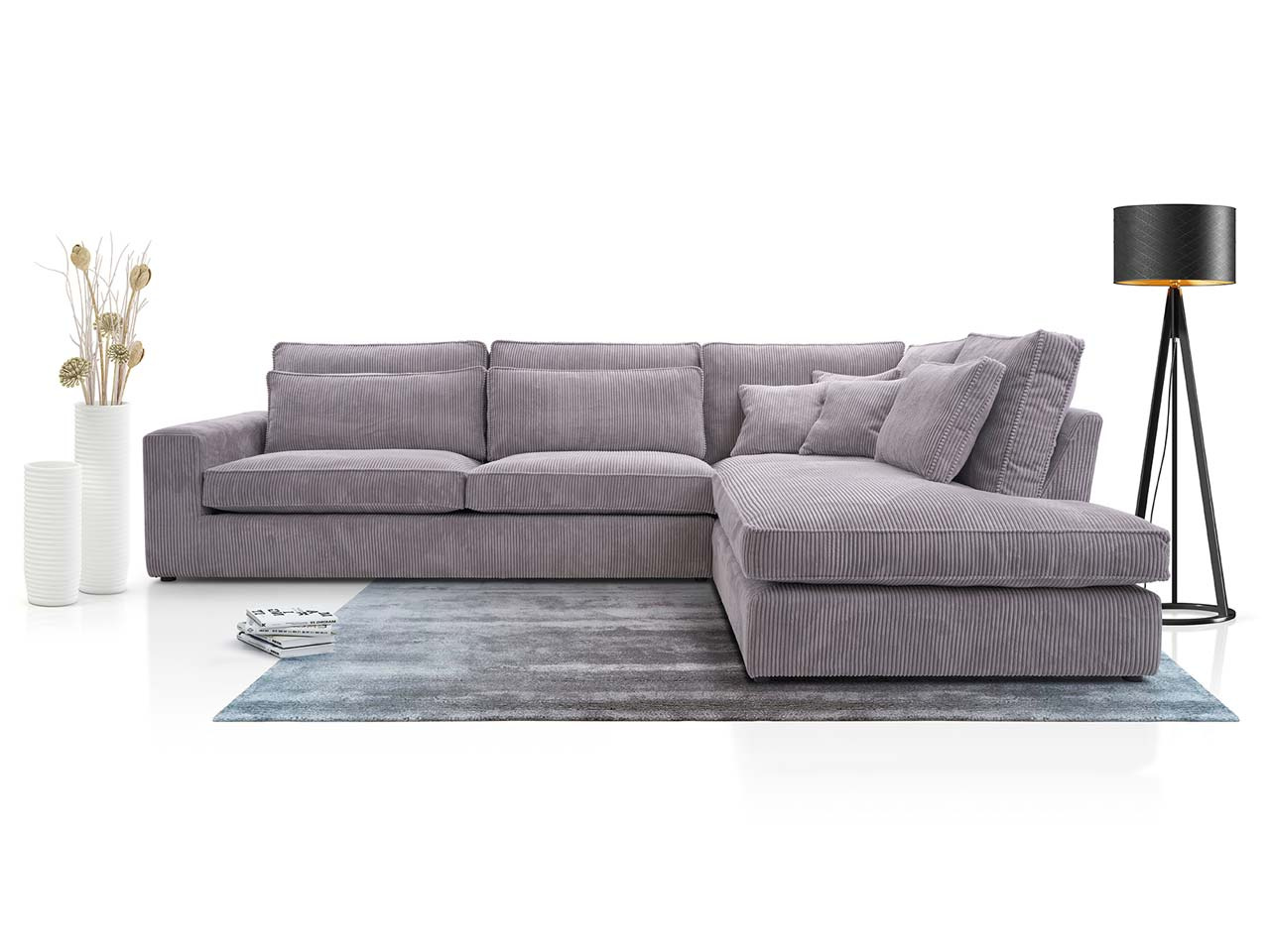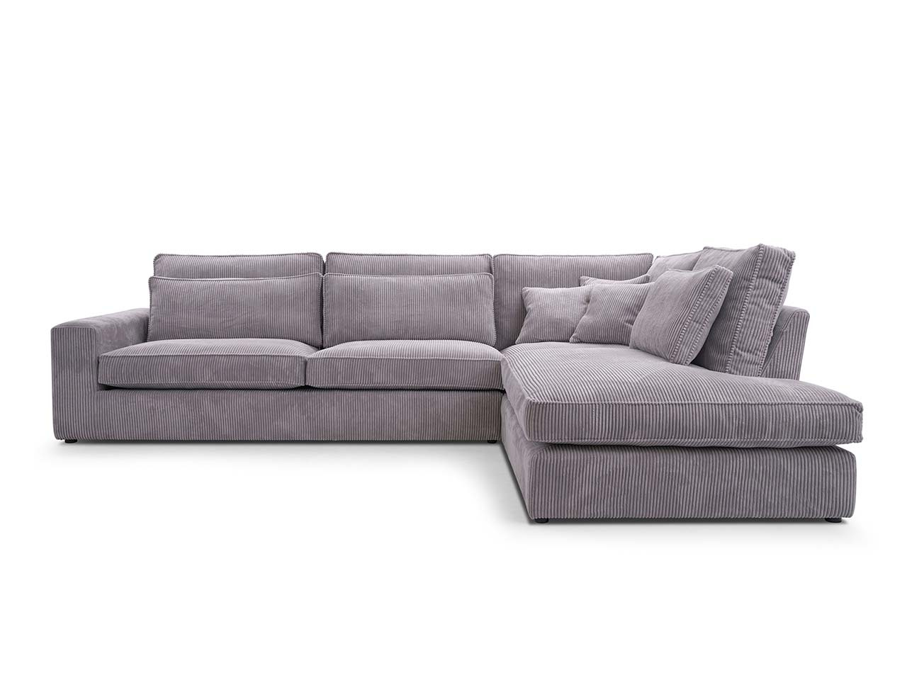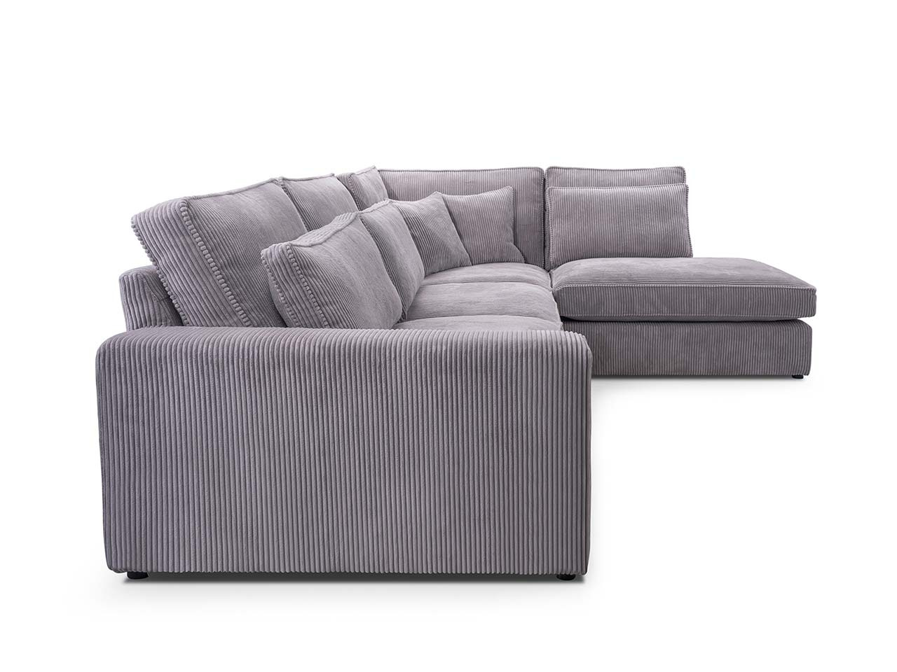 Nowoczesny nierozkładany narożnik do salonu z poduszkami.