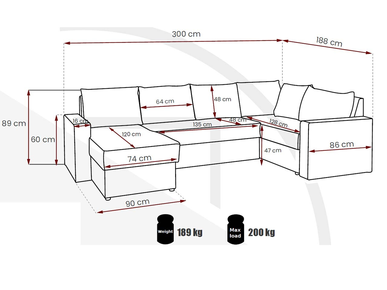 Szerokość (cm) ![]() Szerokość mebla podana w cm. | 300 |