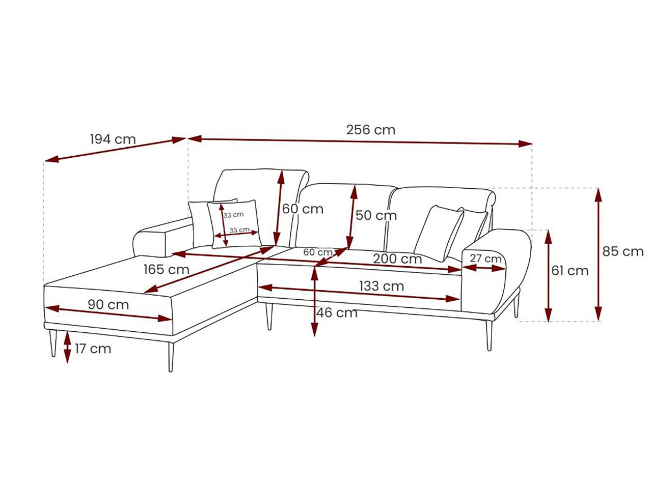 Szerokość (cm) ![]() Szerokość mebla podana w cm. | 256 |
