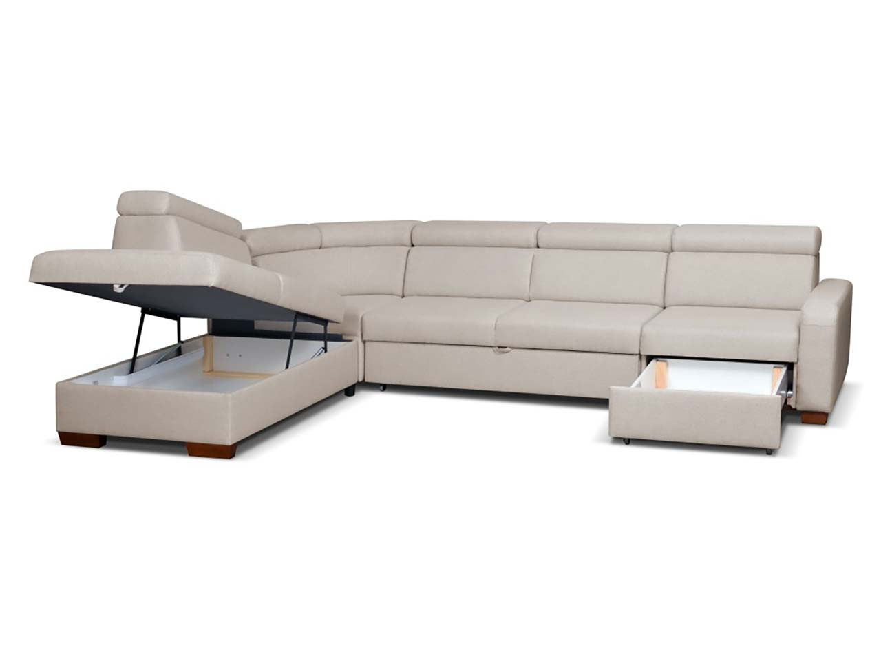 Wypoczynkowy duży narożnik z regulowanymi zagłówkami do salonu