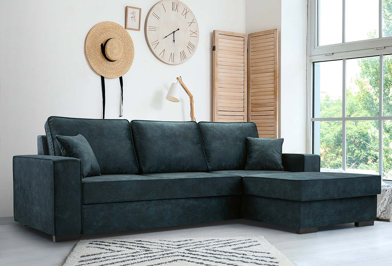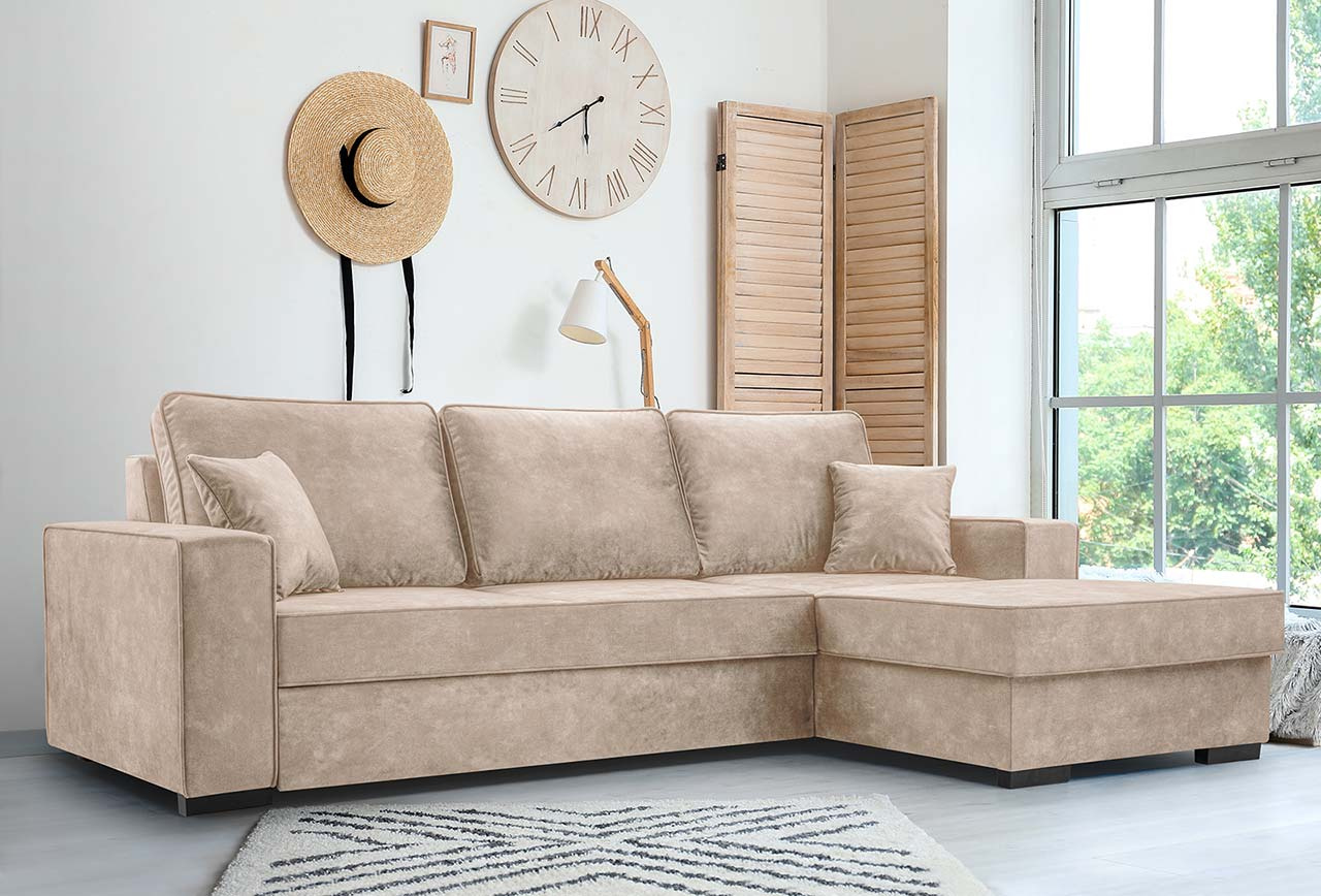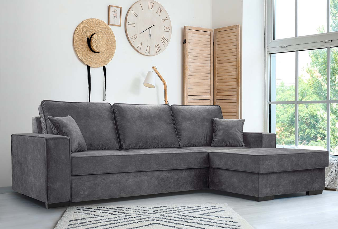 Nowoczesny wypoczynkowy narożnik LUPIN do salonu z poduszkami.