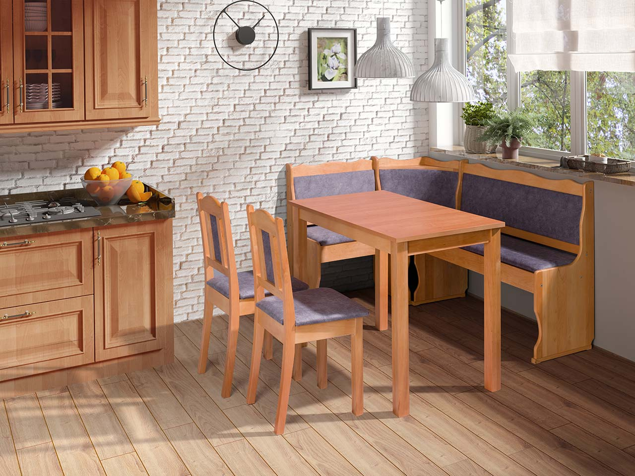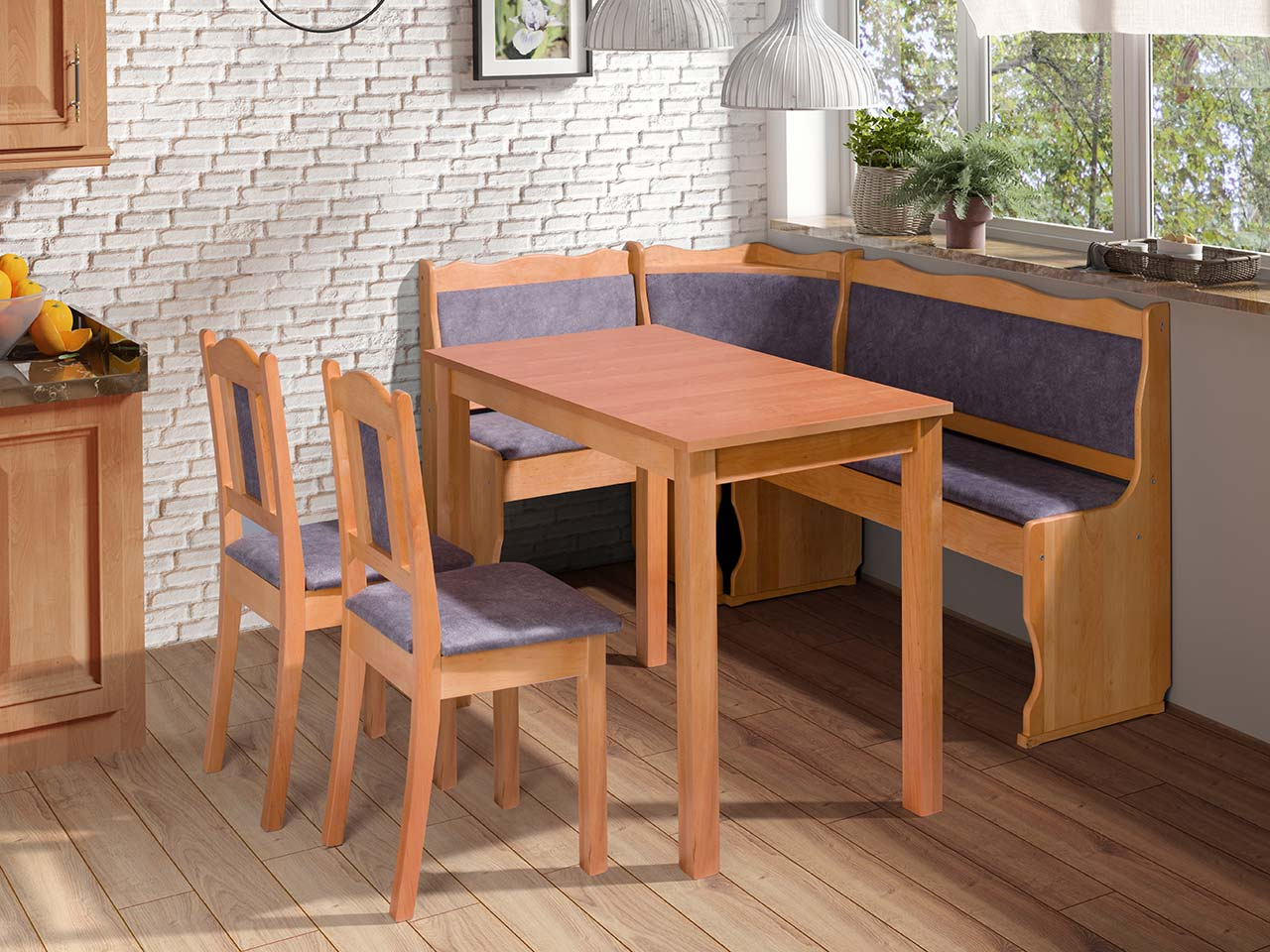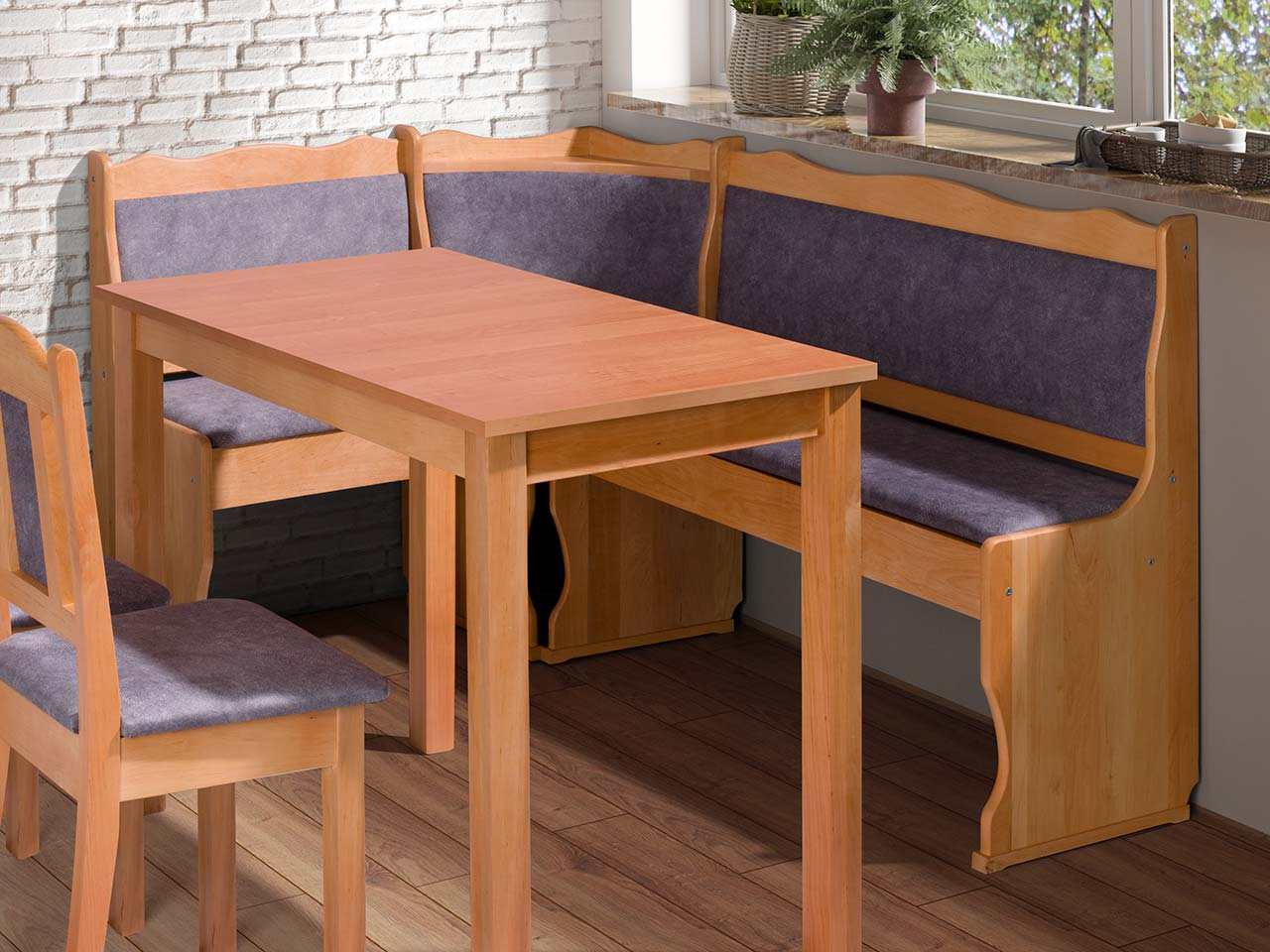 - Ława narożna Mini III, wykonana z drewna olchowego, pod siedziskiem znajduję się schowek.