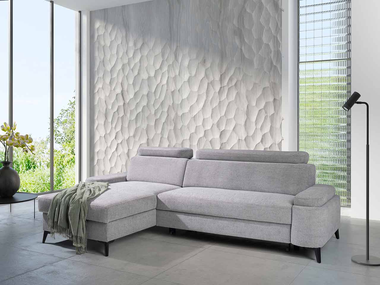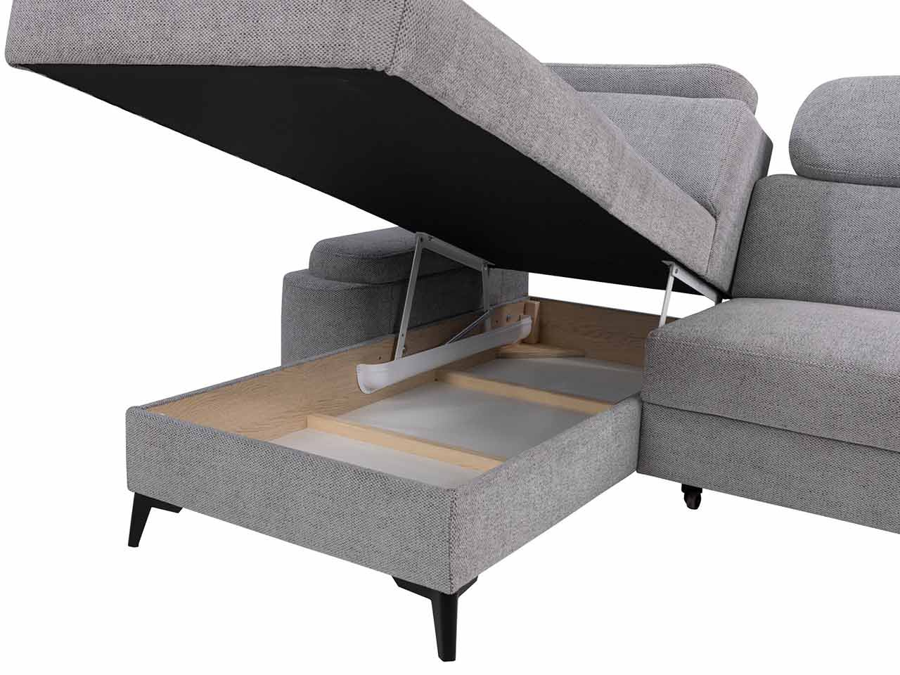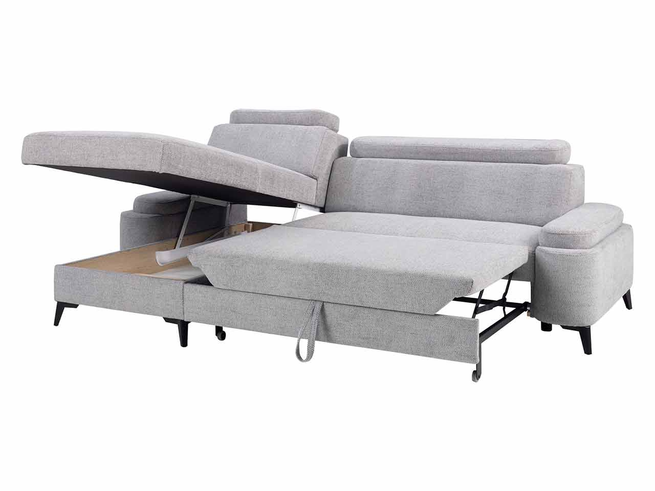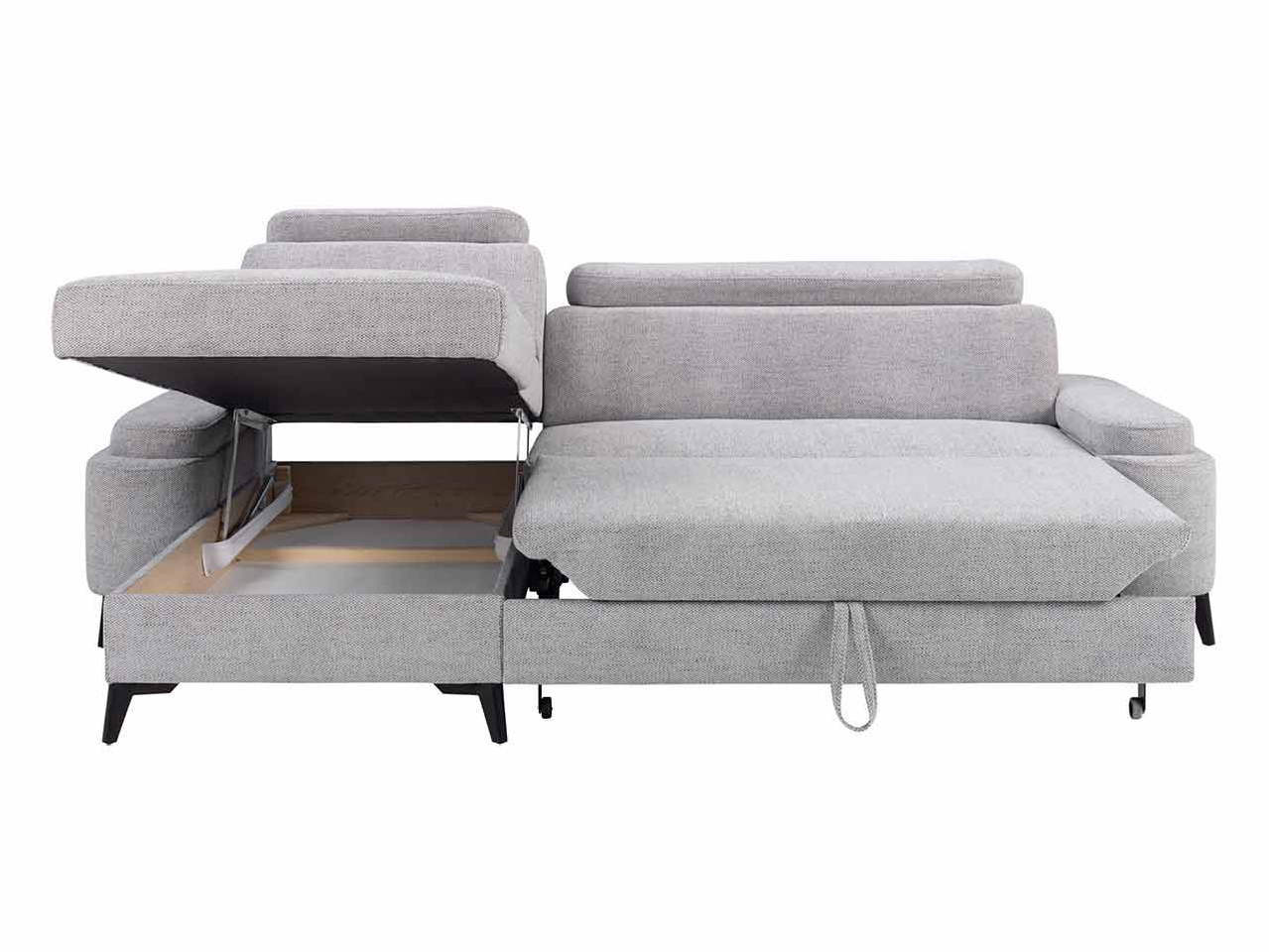 Wygodny narożnik z funcją spania i pojemnikiem na pościel, pasuje idealnie do pokoju lub salonu.