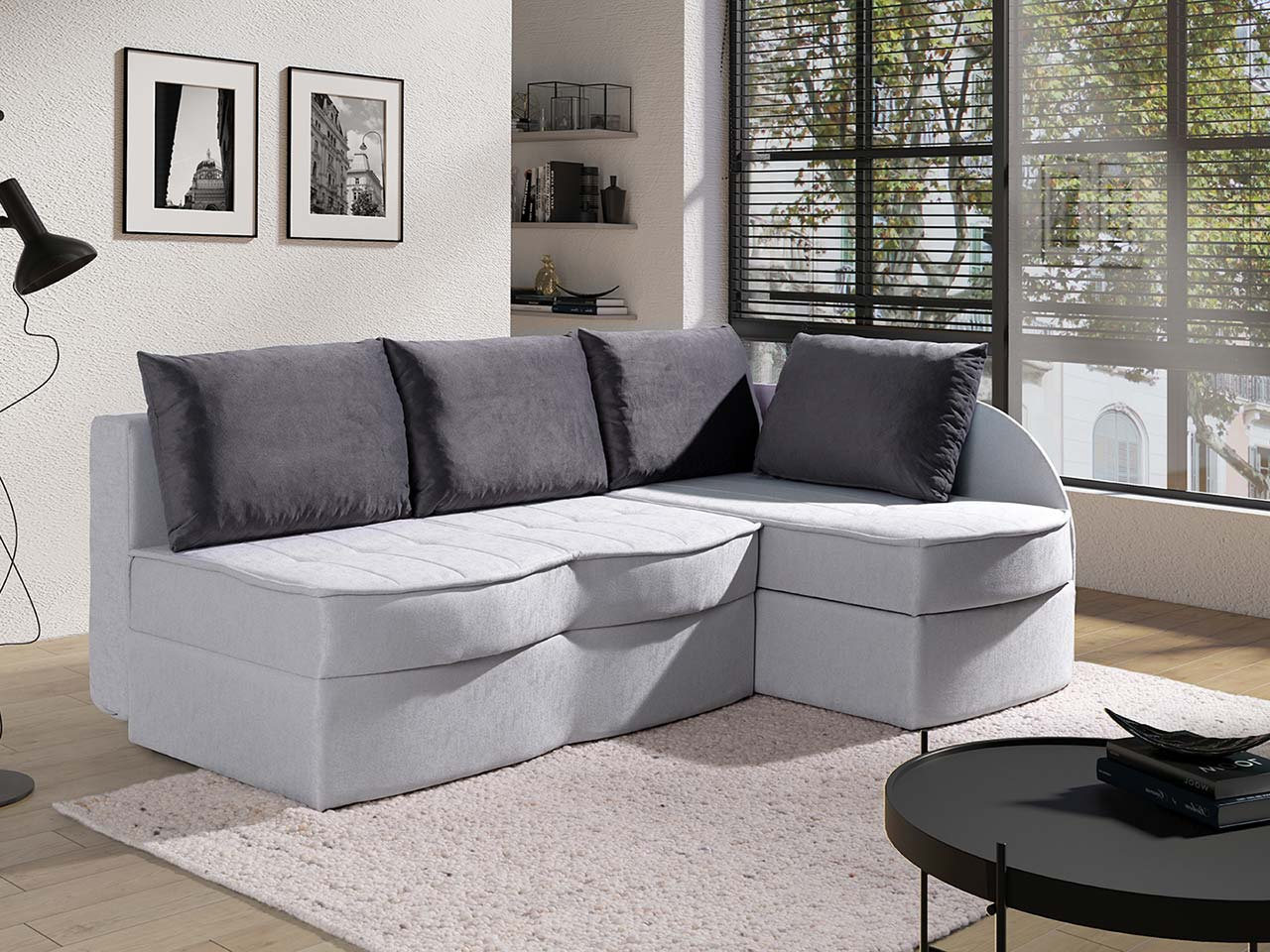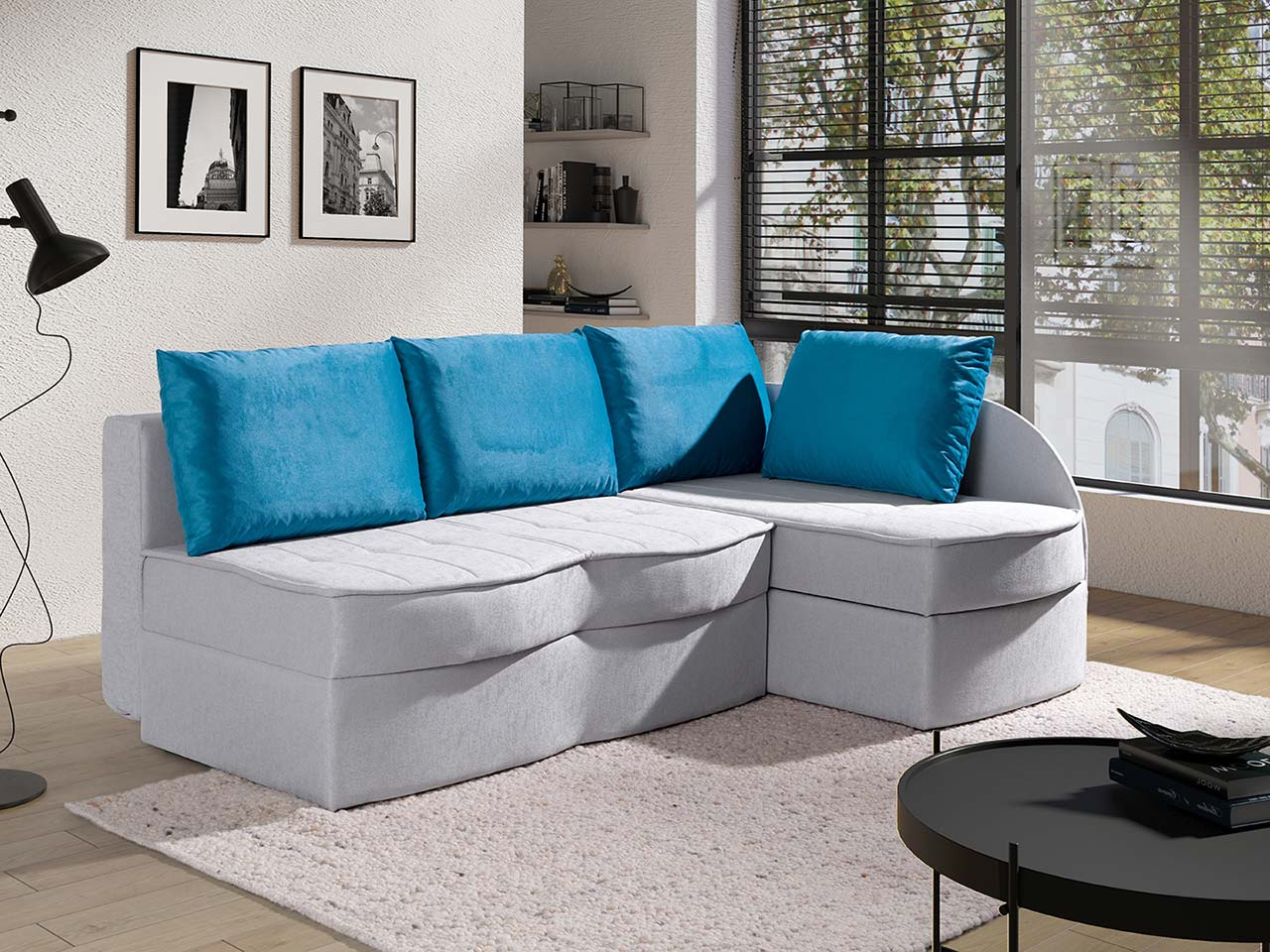 Łatwy sposób rozkładania i pojemnik na pościel zapewni maksimum funkcjonalności.