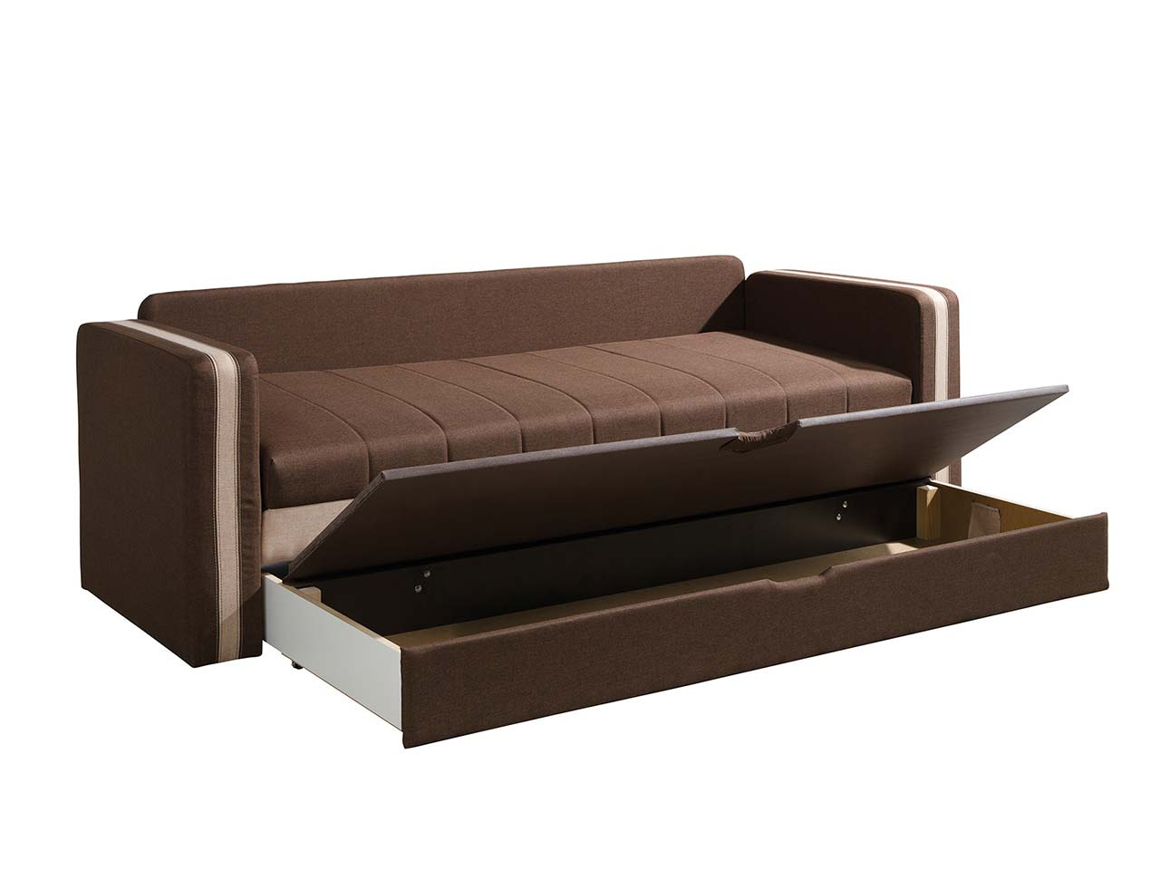 Posiada funkcję spania oraz pojemnikiem na pościel.
