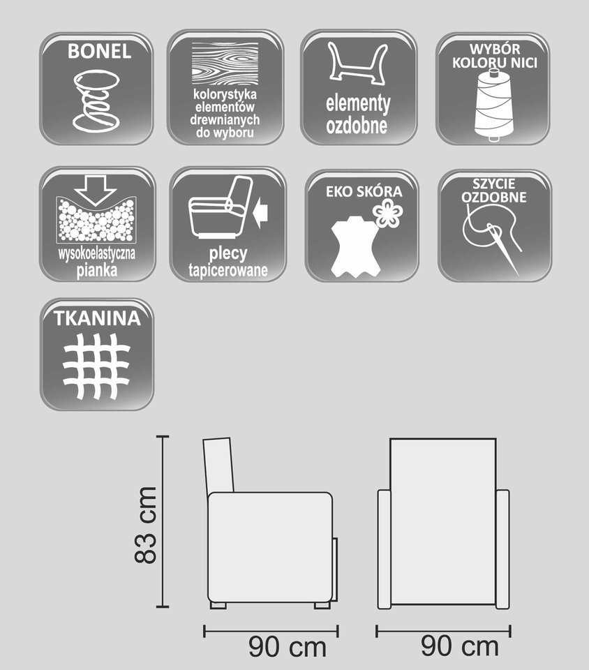W poduchach siedzeniowych zastosowano sprężyny typu bonell.