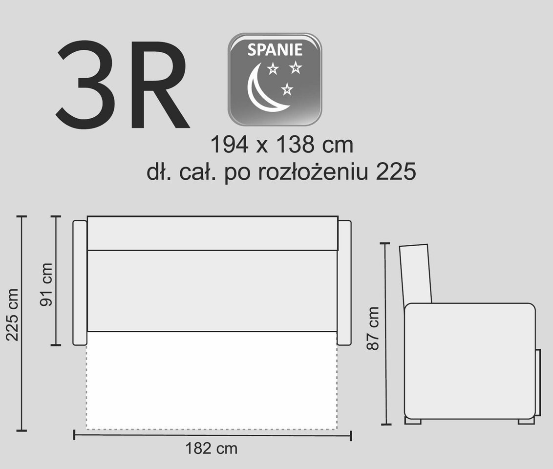 • Rozkładana wypoczynkowa sofa 3 osobowa Margo 3R, sofa to komfortowy mebel do wypoczynku i snu.