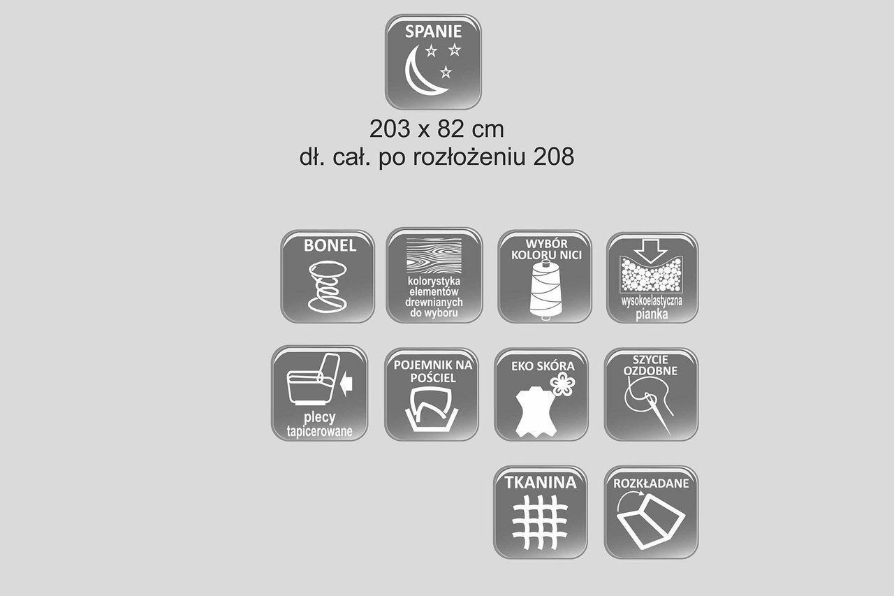 -w pojemniku na pościel nie należy przechowywać większej ilości pościeli od jego objętości (max obciążenie 3 kg) , gdyż spowoduje to odpadnięcie dna pojemnika , trudności w rozkładaniu mebla , uszkodzenie powłoki górnej płyty pojemnika , jak również podbitki wsuwa górnego.
